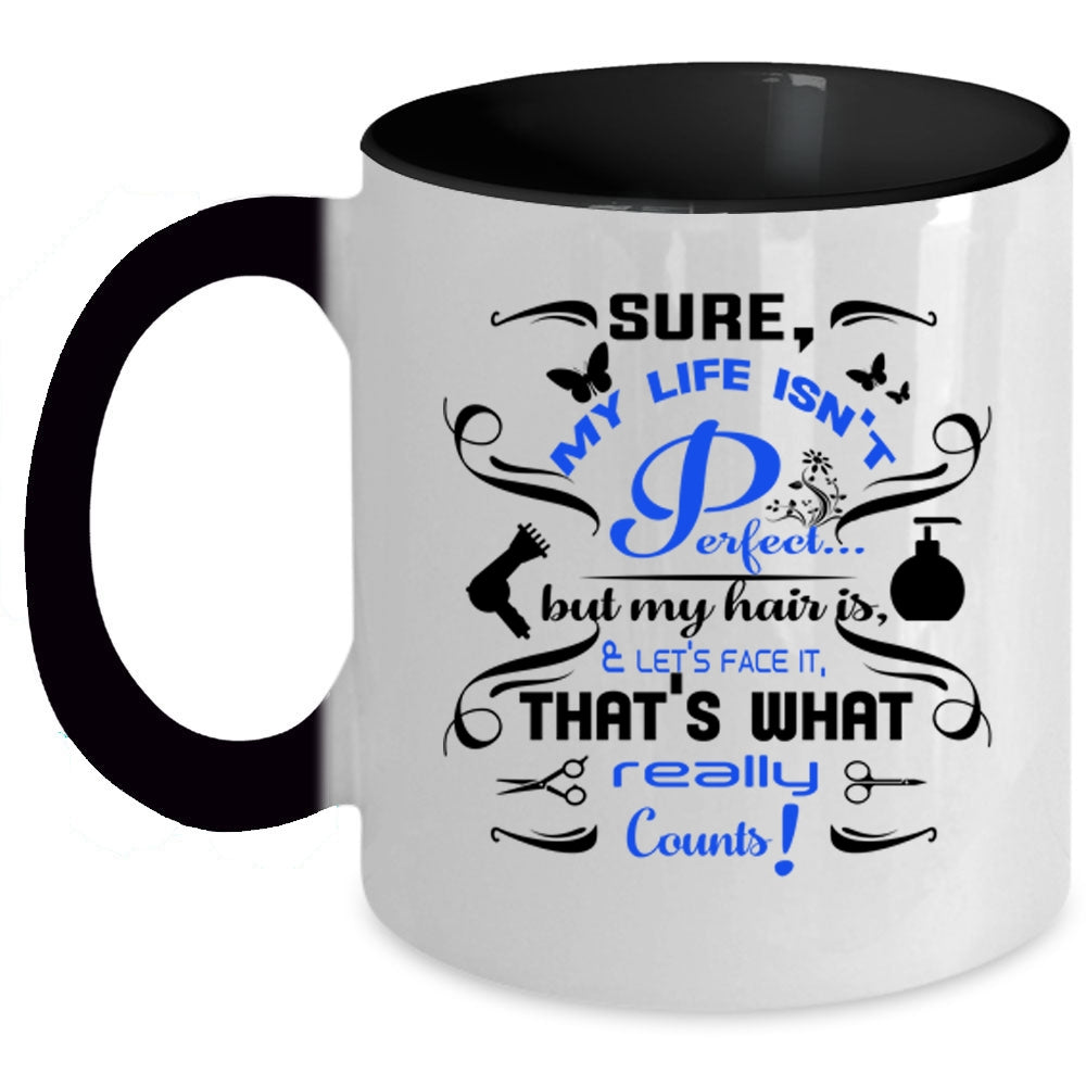 My Hair Is And Let's Face It Coffee Mug, My Life Isn't Perfect Accent Mug