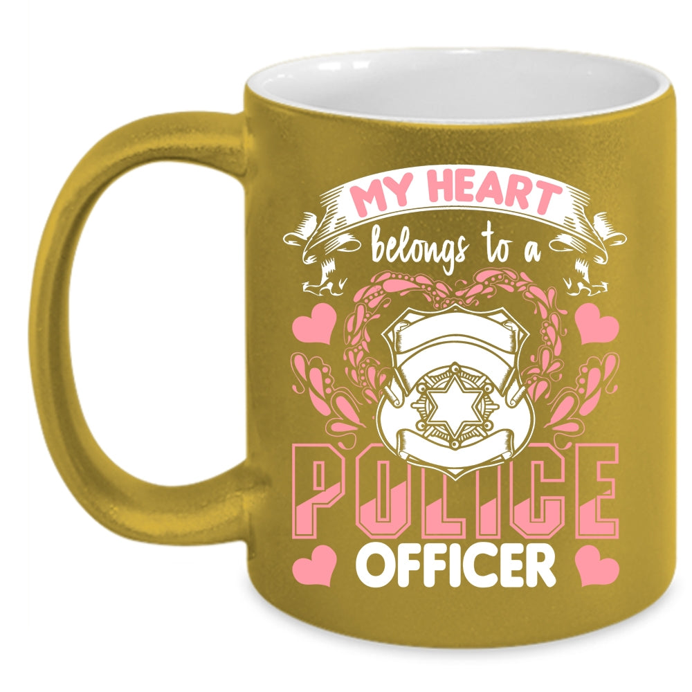 My Heart Belongs To A Police Officer Coffee Mug, I Love Policeman Coffee Cup