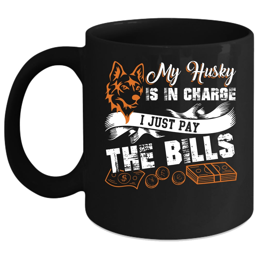 My Husky Is In Charge Coffee Mug, I Just Pay The Bills Coffee Cup