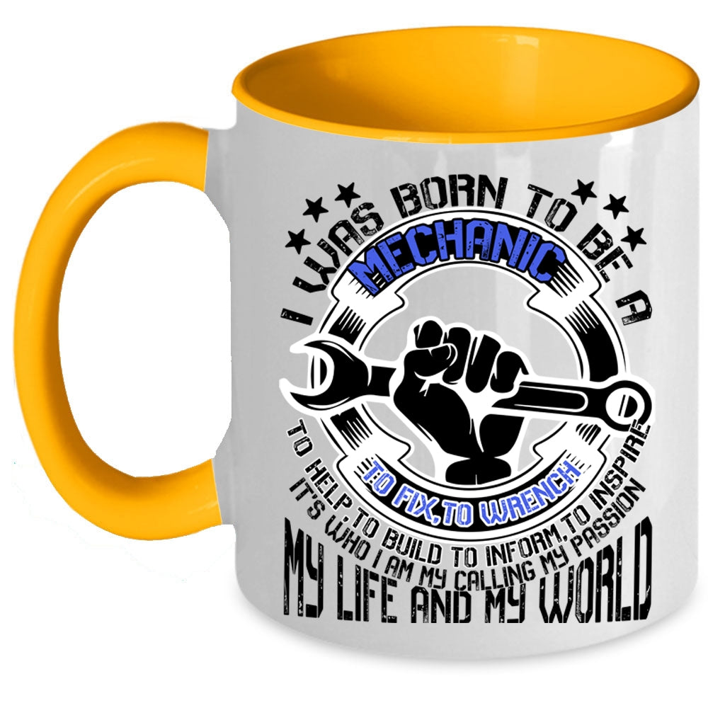 My Life And My World Coffee Mug, I Was Born To Be A Mechanic Accent Mug