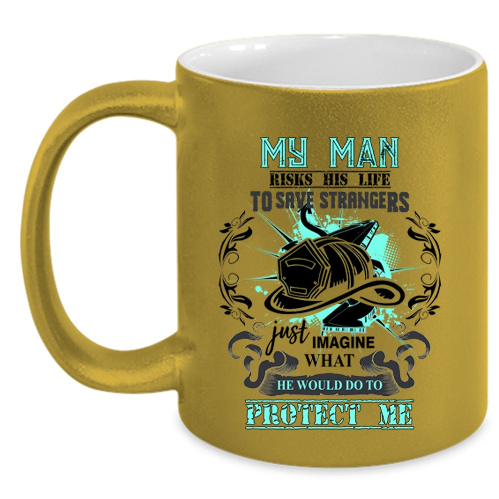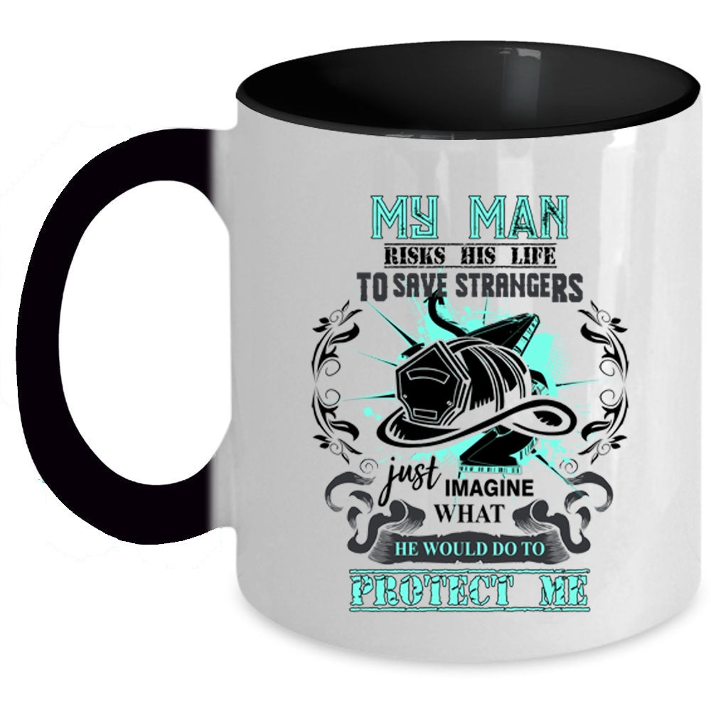 My Man Protect Me Coffee Mug, Cool Fireman Accent Mug