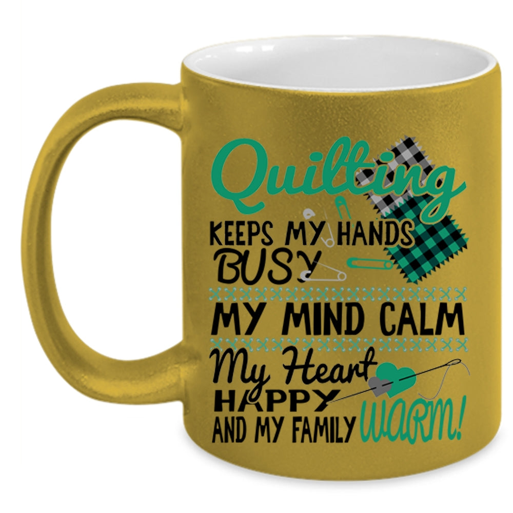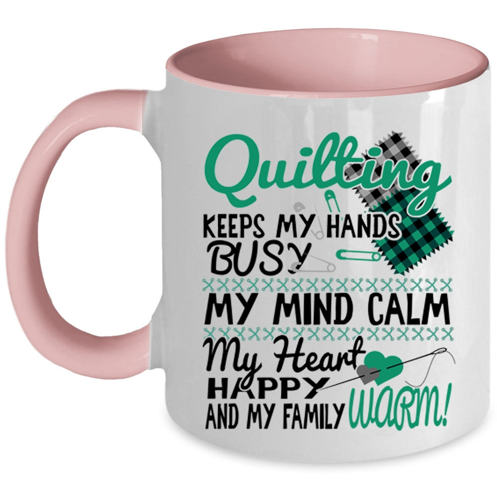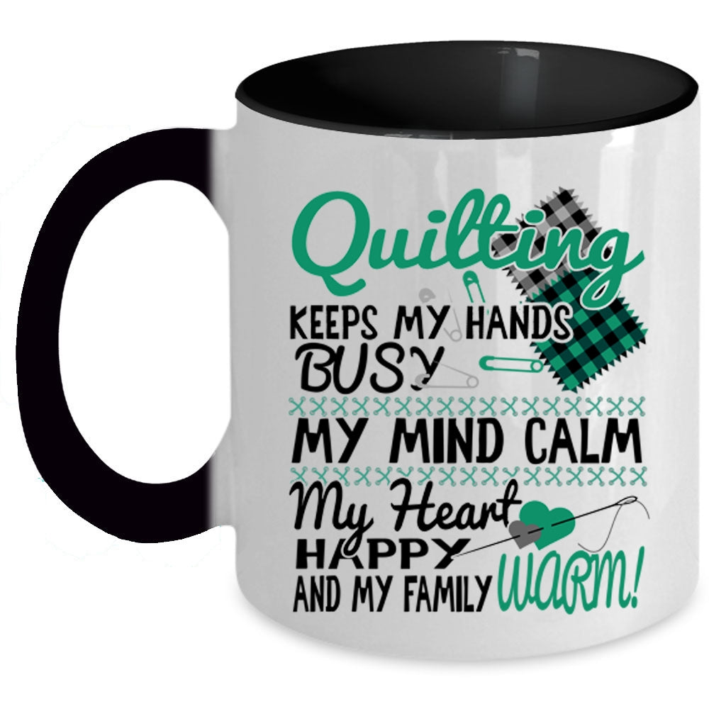 My Mind Calm My Heart Coffee Mug, Quilting Keeps My Hands Busy Accent Mug