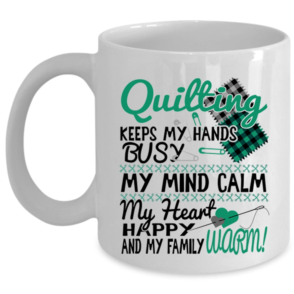 My Mind Calm My Heart Coffee Mug, Quilting Keeps My Hands Busy Cup