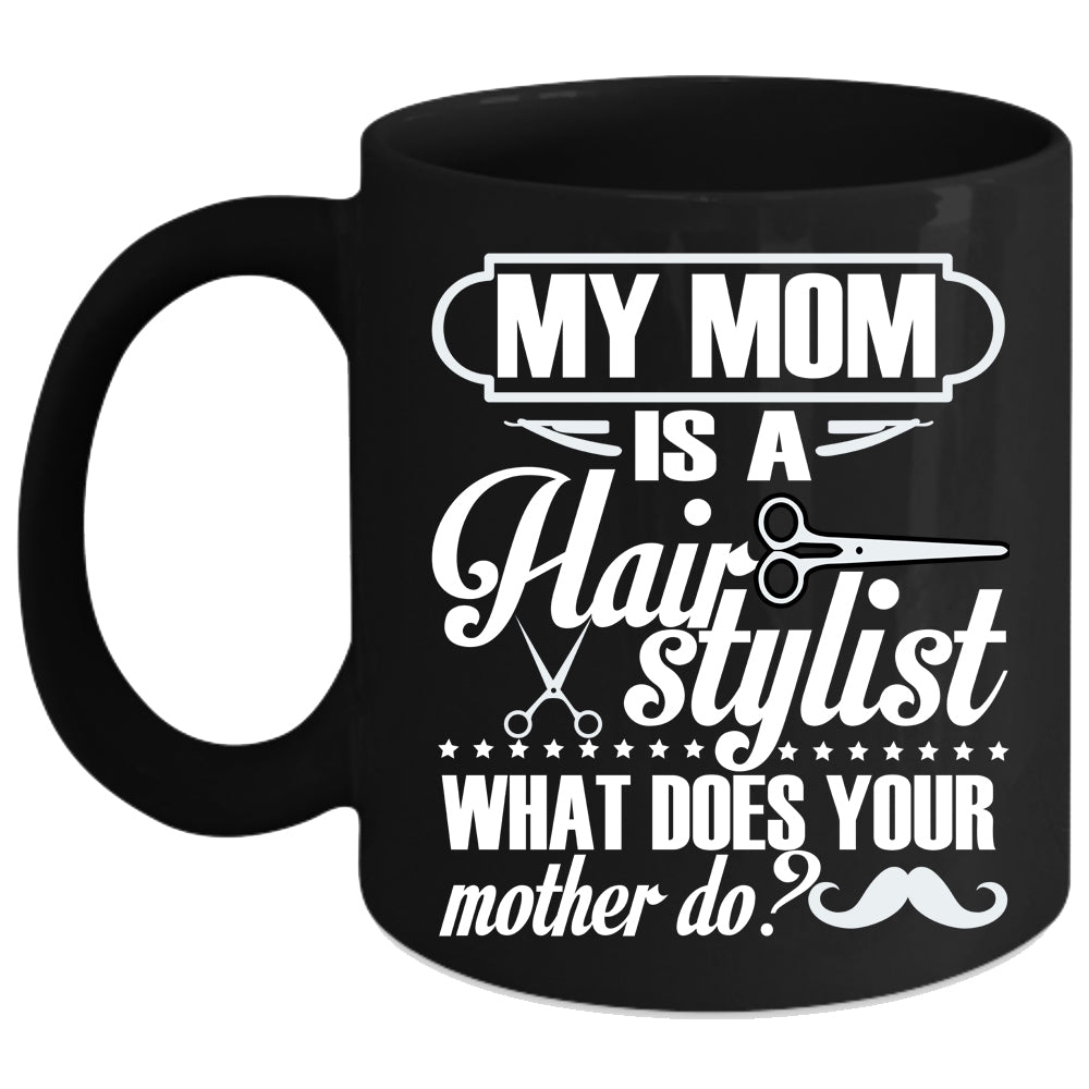 My Mom Is A Hair Stylist Coffee Mug, What Does You Mother Do Coffee Cup