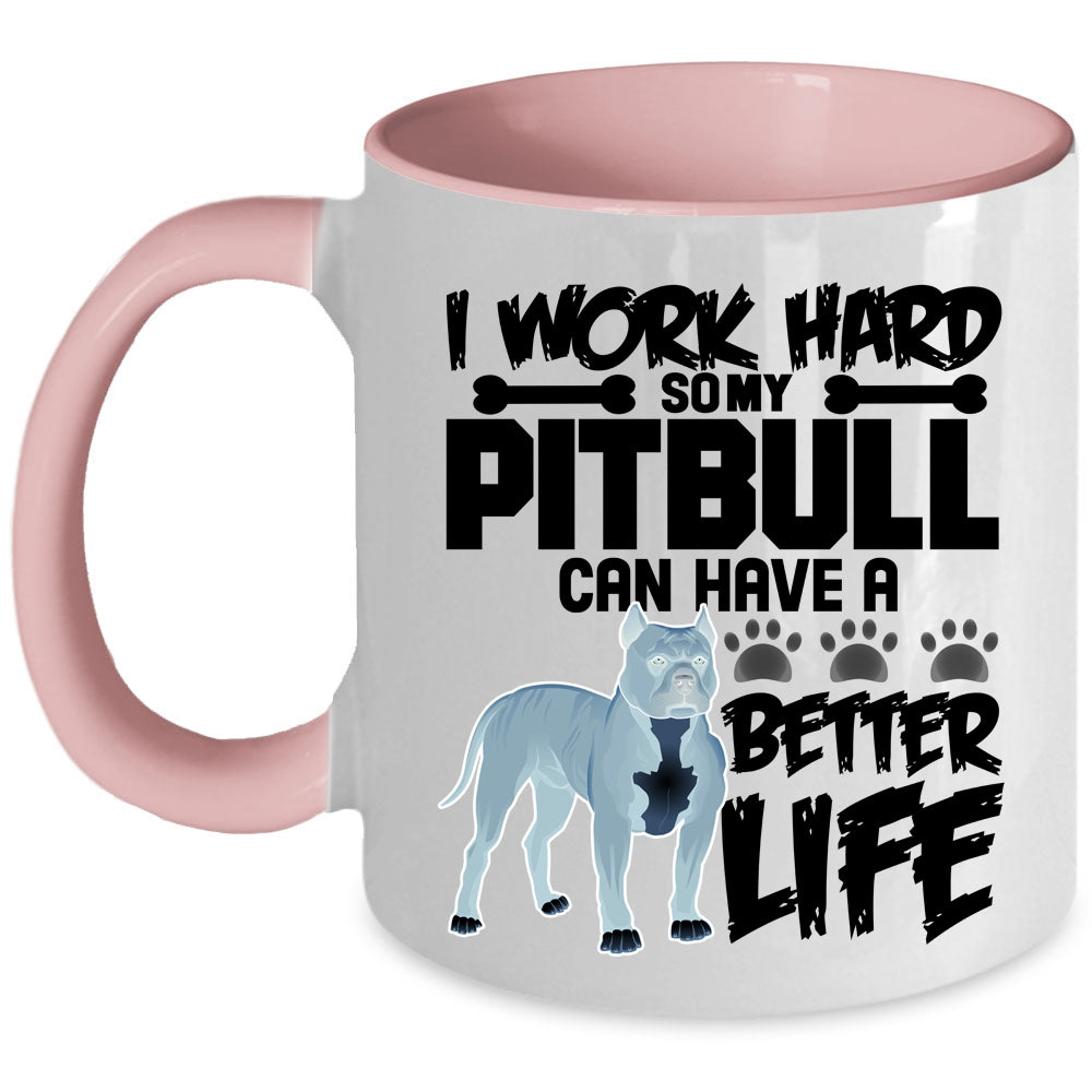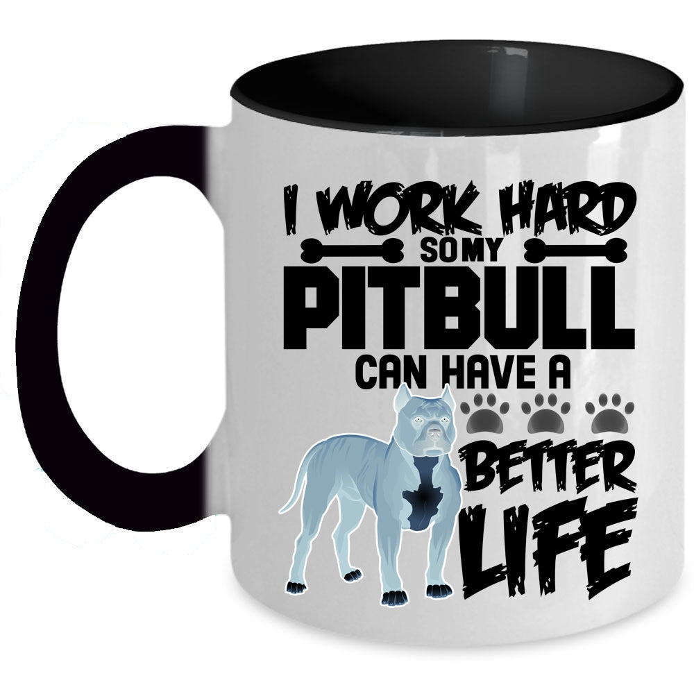 My Pibull Can Have A Better Life Coffee Mug, I Work Hard Accent Mug