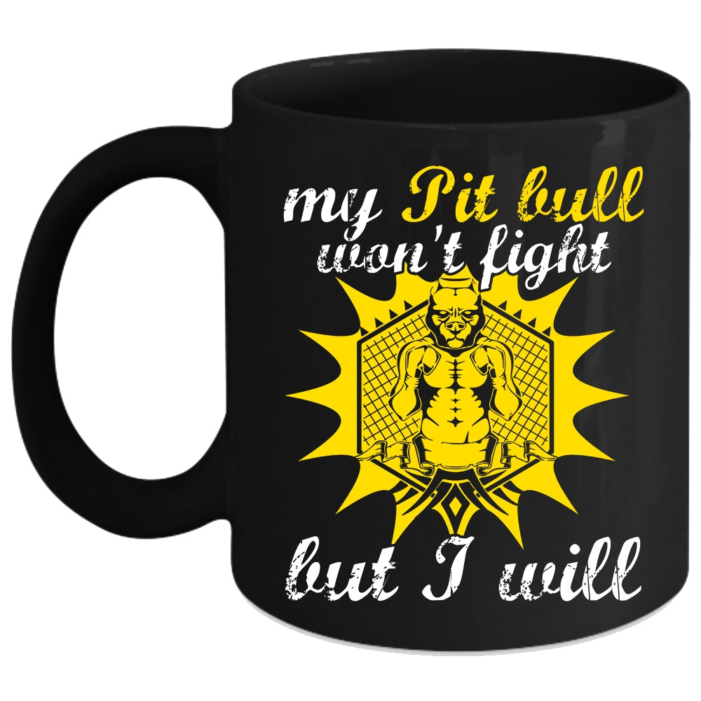 My Pit Bull Won't Fight But I Will Coffee Mug, Cool Pit Bull Coffee Cup