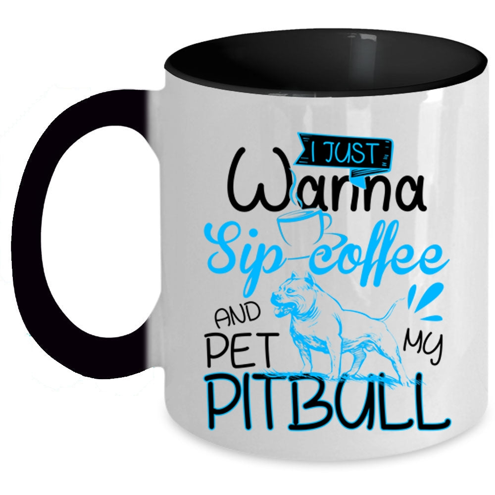 My Pitbull Coffee Mug, I'm Just Wanna Sip Coffee And Pet Accent Mug