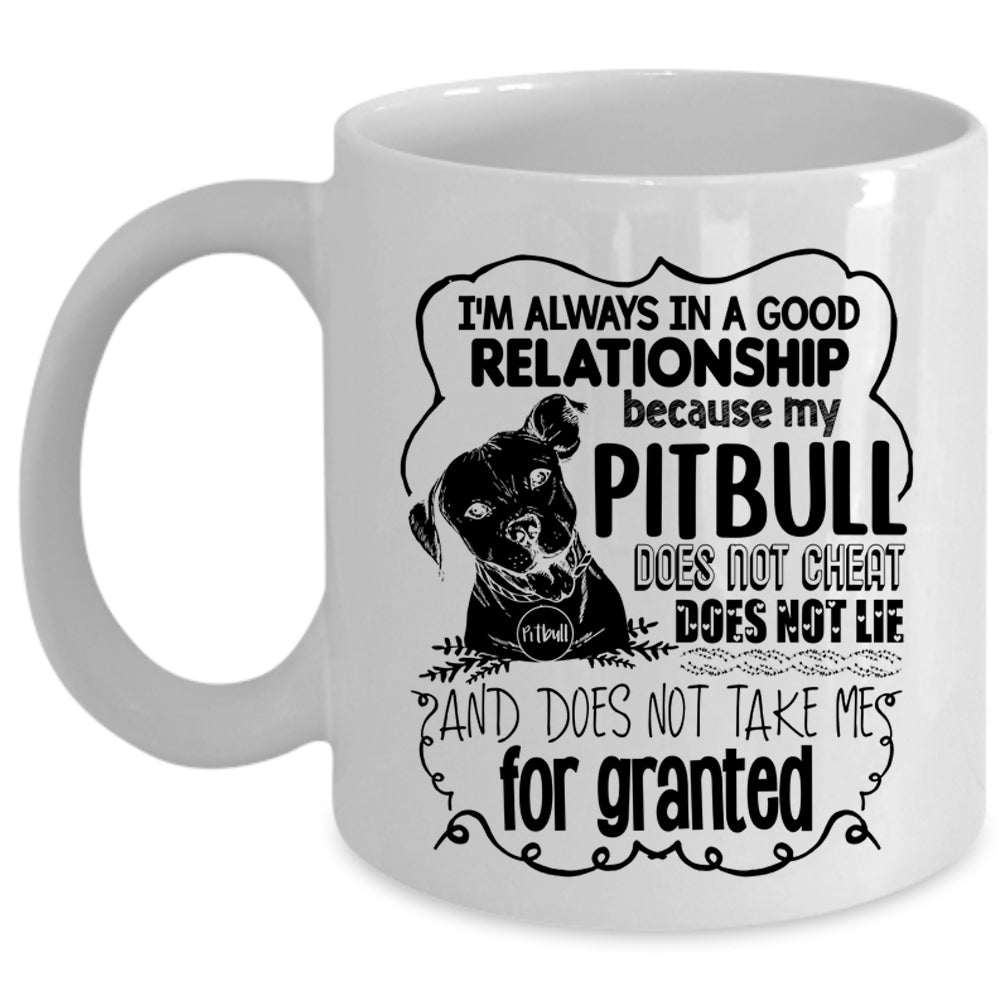 My Pitbull Does Not Cheat Coffee Mug, I'm Always In A Good Relationship Cup