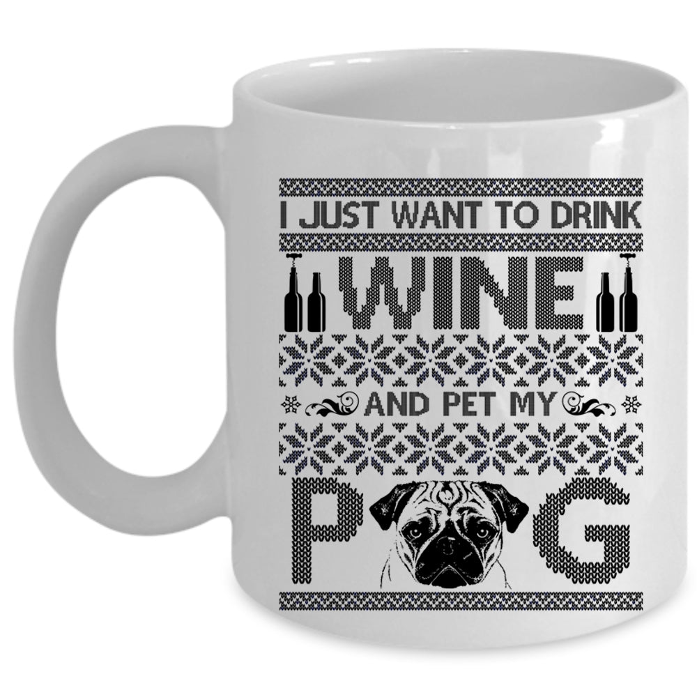My Pug Coffee Mug, I Just Want To Drink Wine And Pet Cup