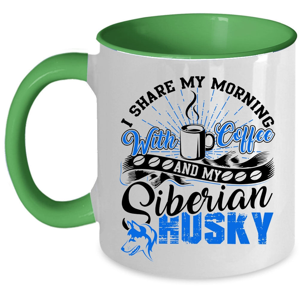 My Siberian Husky Coffee Mug, I Share My Morning With Coffee Accent Mug