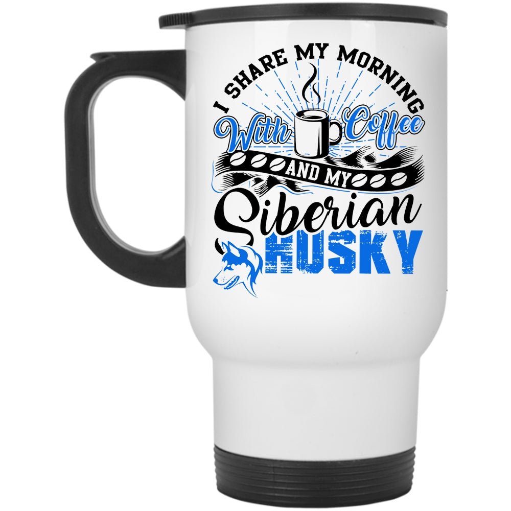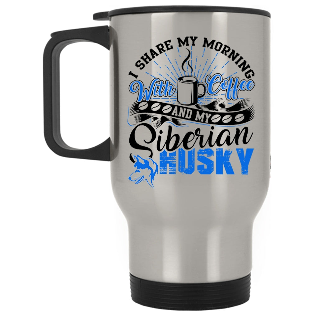 My Siberian Husky Travel Mug, I Share My Morning With Coffee Mug