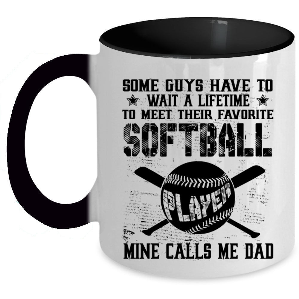 My Softball Player Calls Me Dad Coffee Mug, Favorite Softball Player Accent Mug