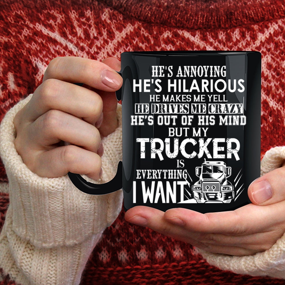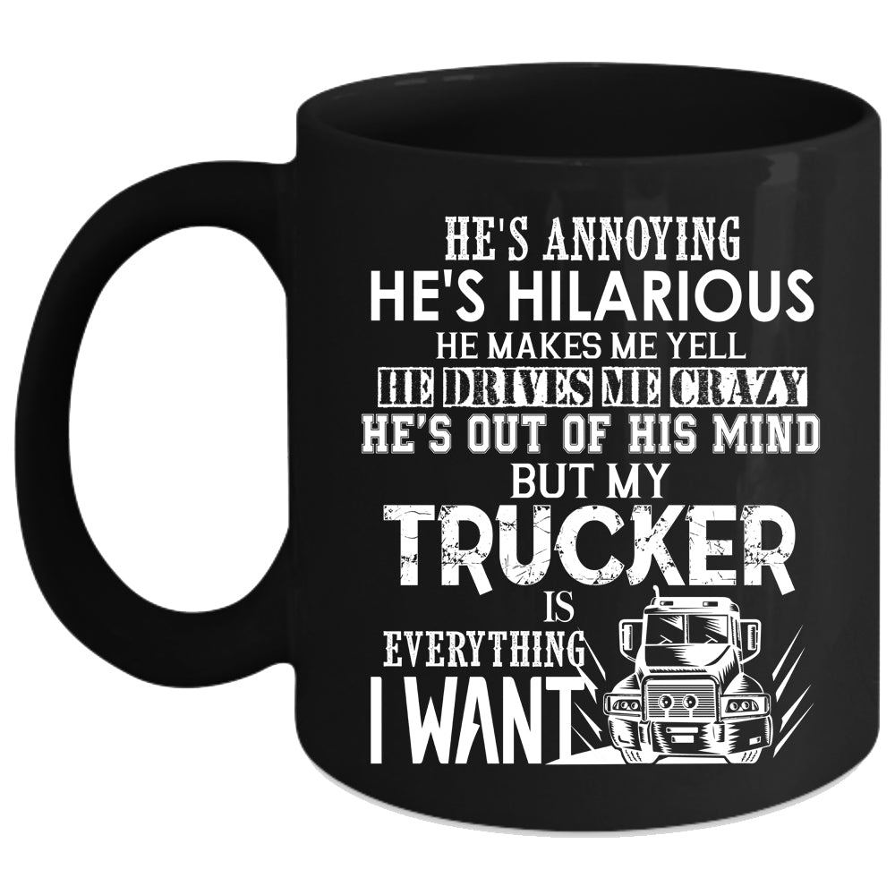My Trucker Is Everything I Want Coffee Mug, I Love Trucker Coffee Cup