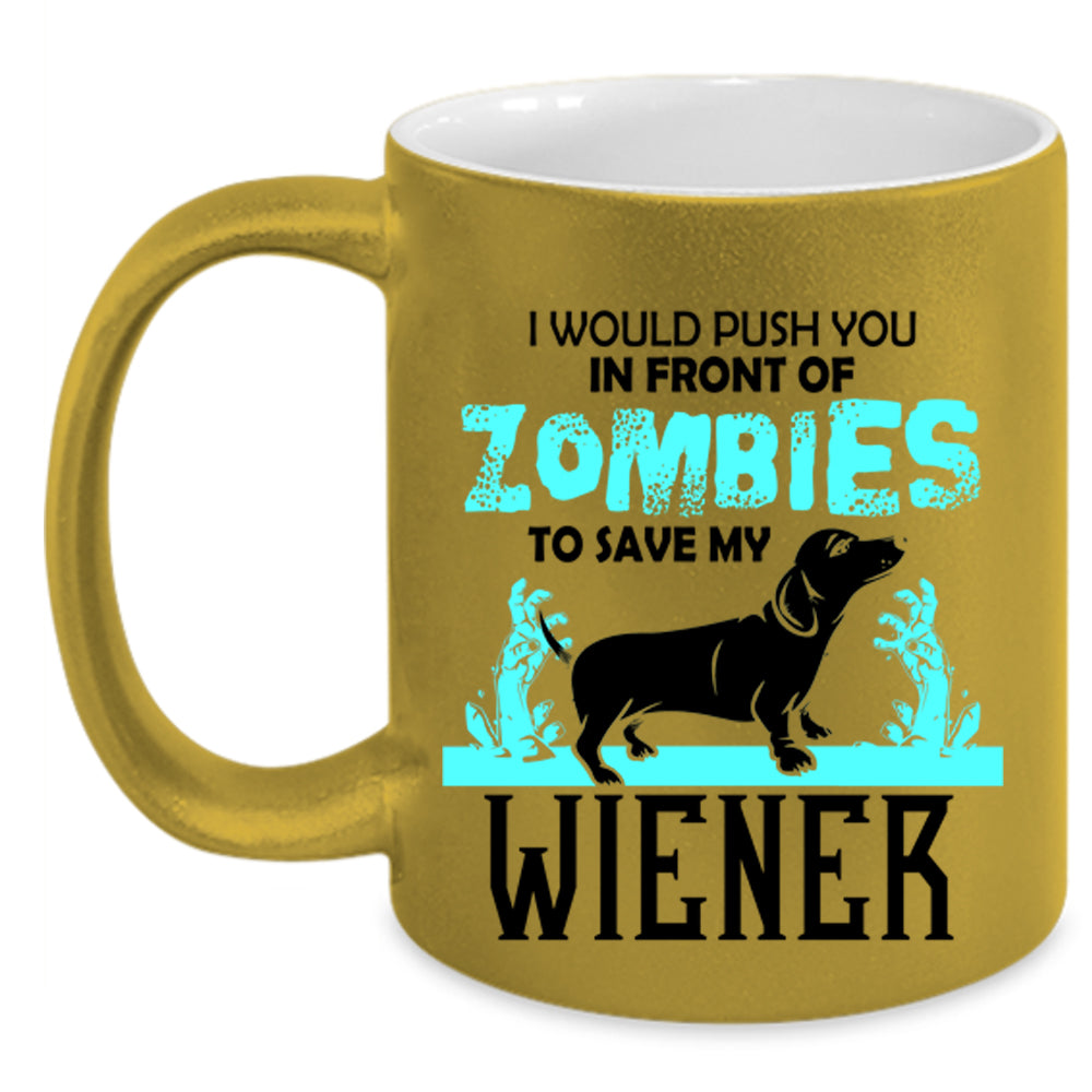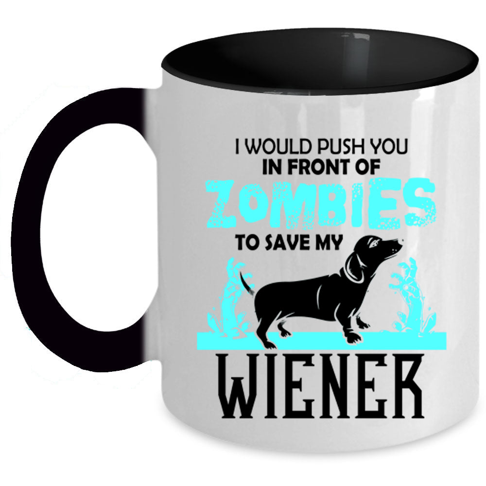 My Wiener Coffee Mug, I Would Push You In Front Of Zombies Accent Mug
