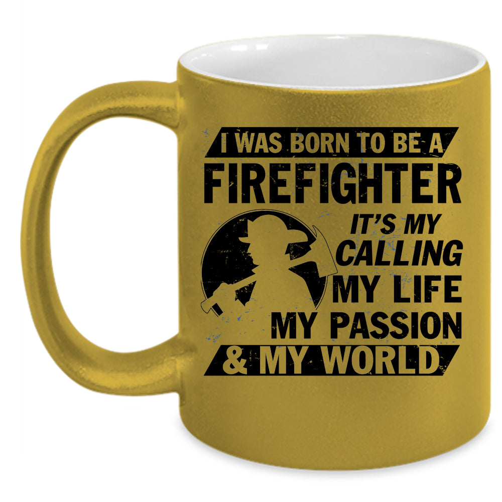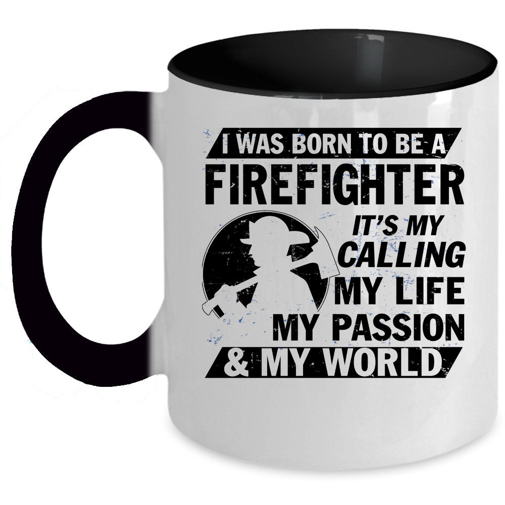 My World Coffee Mug, I Was Born To Be A Firefighter Accent Mug