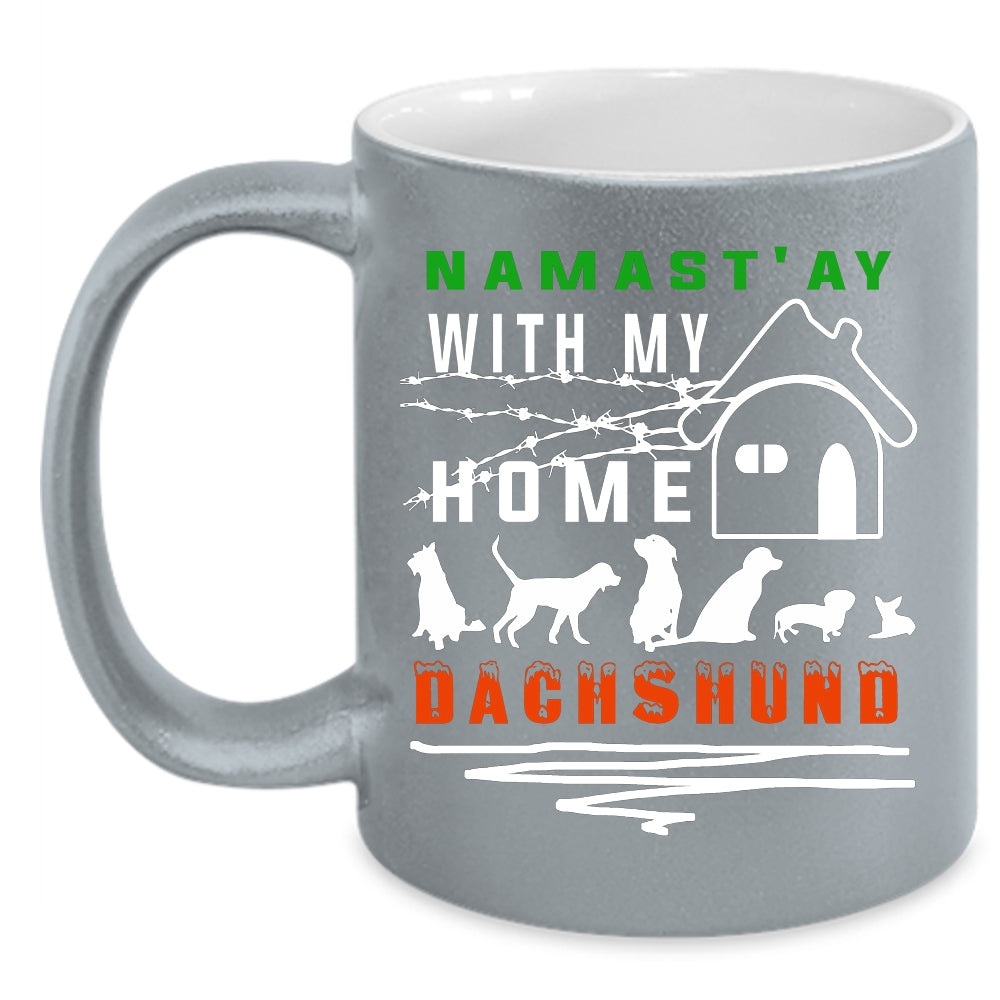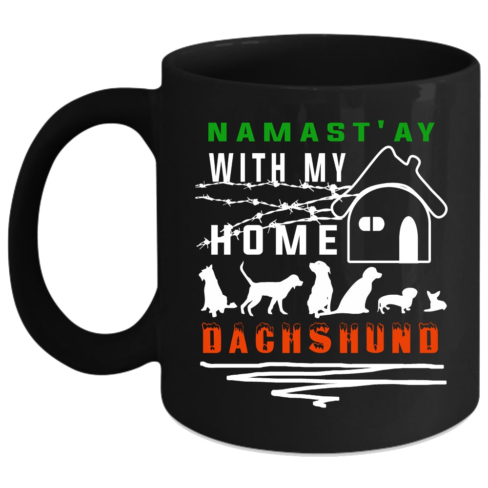 Namast' Ay With My Home Dachshund Coffee Mug, Cute Dachshund Lovers Coffee Cup