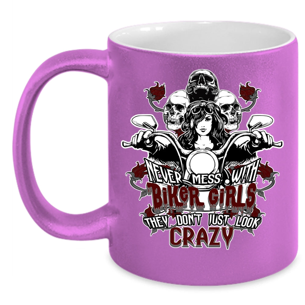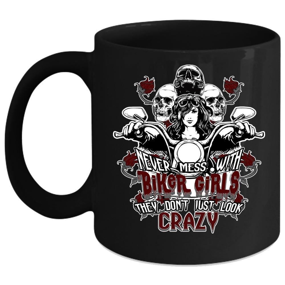 Never Mess With Biker Girls Coffee Mug, Crazy Biker Girls Coffee Cup