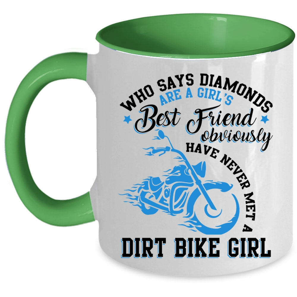 Never Met A Dirt Bike Girl Coffee Mug, Diamonds Are A Girl's Best Friend Accent Mug
