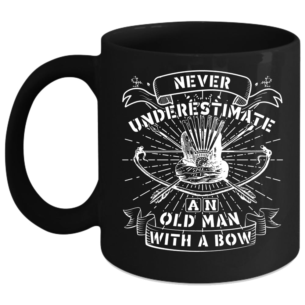Never Underestimate An Old Man With A Bow Coffee Mug, Cool Coffee Cup