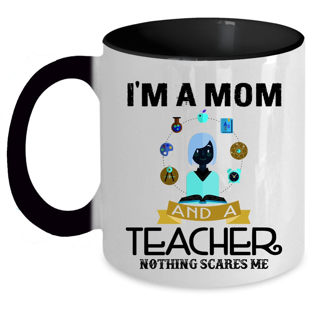 Nothing Scares Me Coffee Mug, I'm A Mom And A Teacher Accent Mug