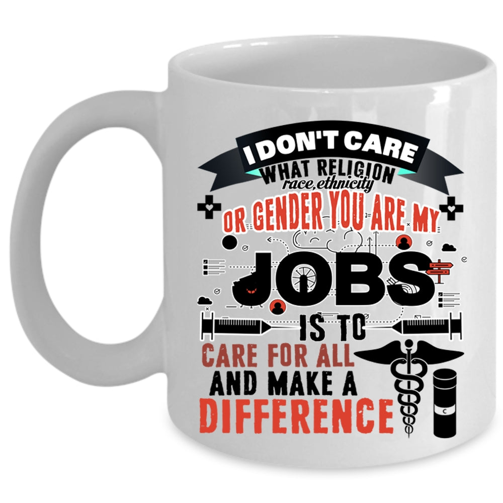 Nurses Coffee Mug, My Jobs Is To Care For All And Make Difference Cup