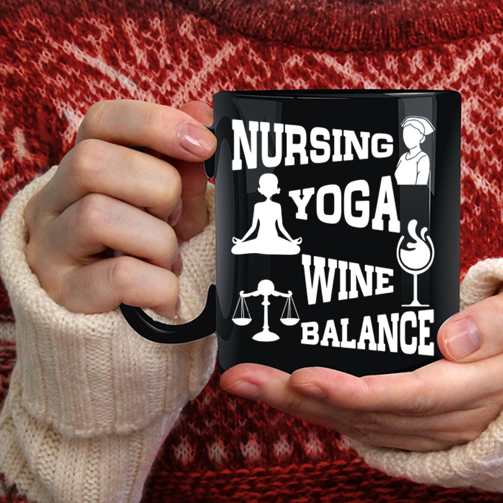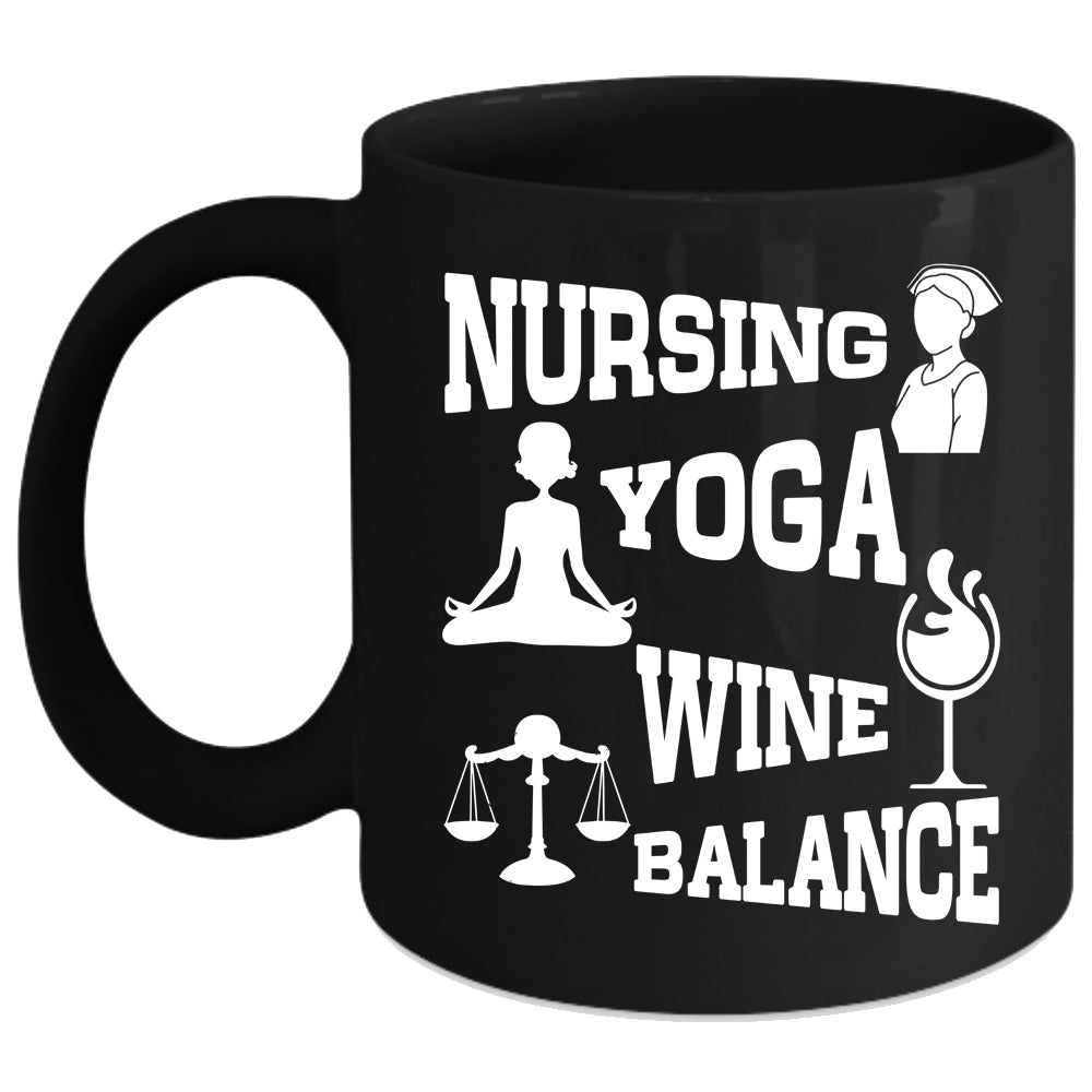 Nursing Yoga Wine Balance Coffee Mug, Funny Gift For Yogi Coffee Cup