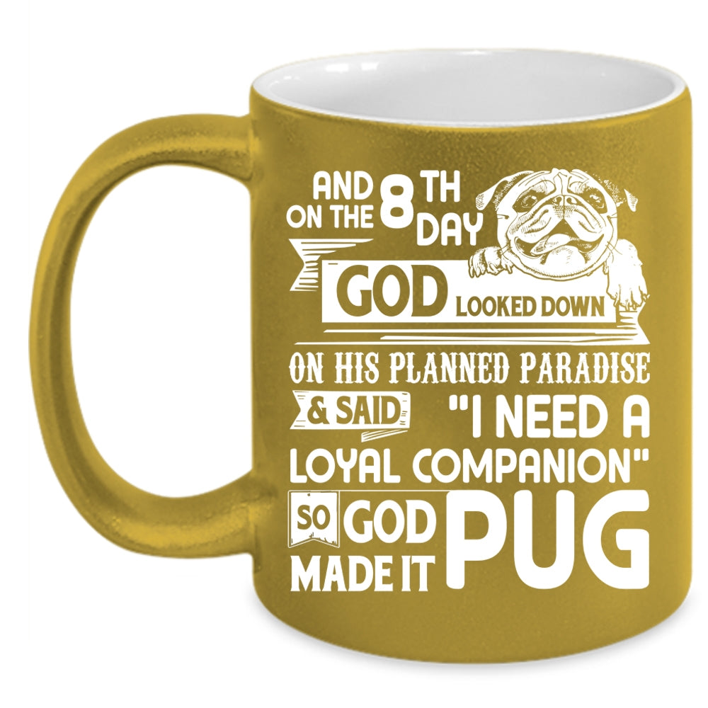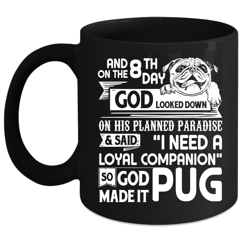 On The 8th Day God Made Pug Coffee Mug, Funny Pug Lover Coffee Cup