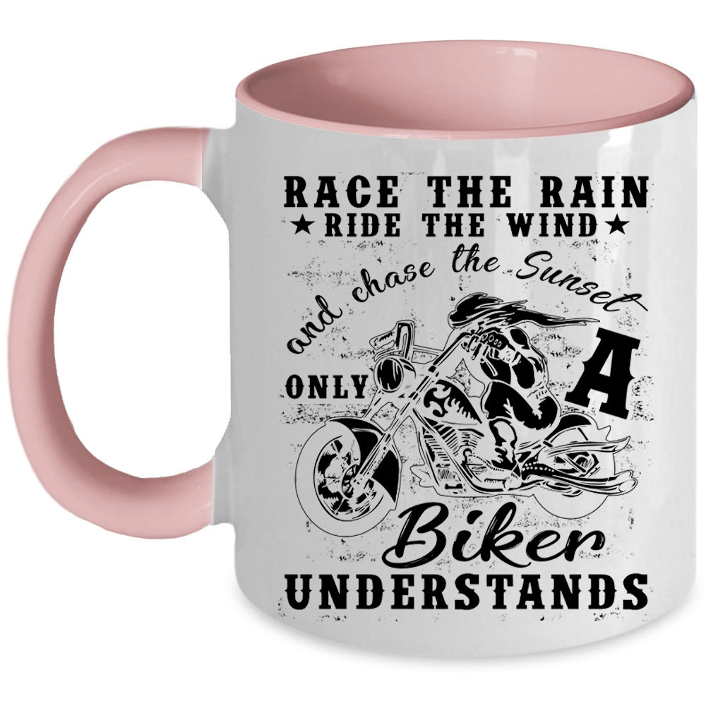 Only A Biker Understands Coffee Mug, Race The Rain Race The Wind Accent Mug