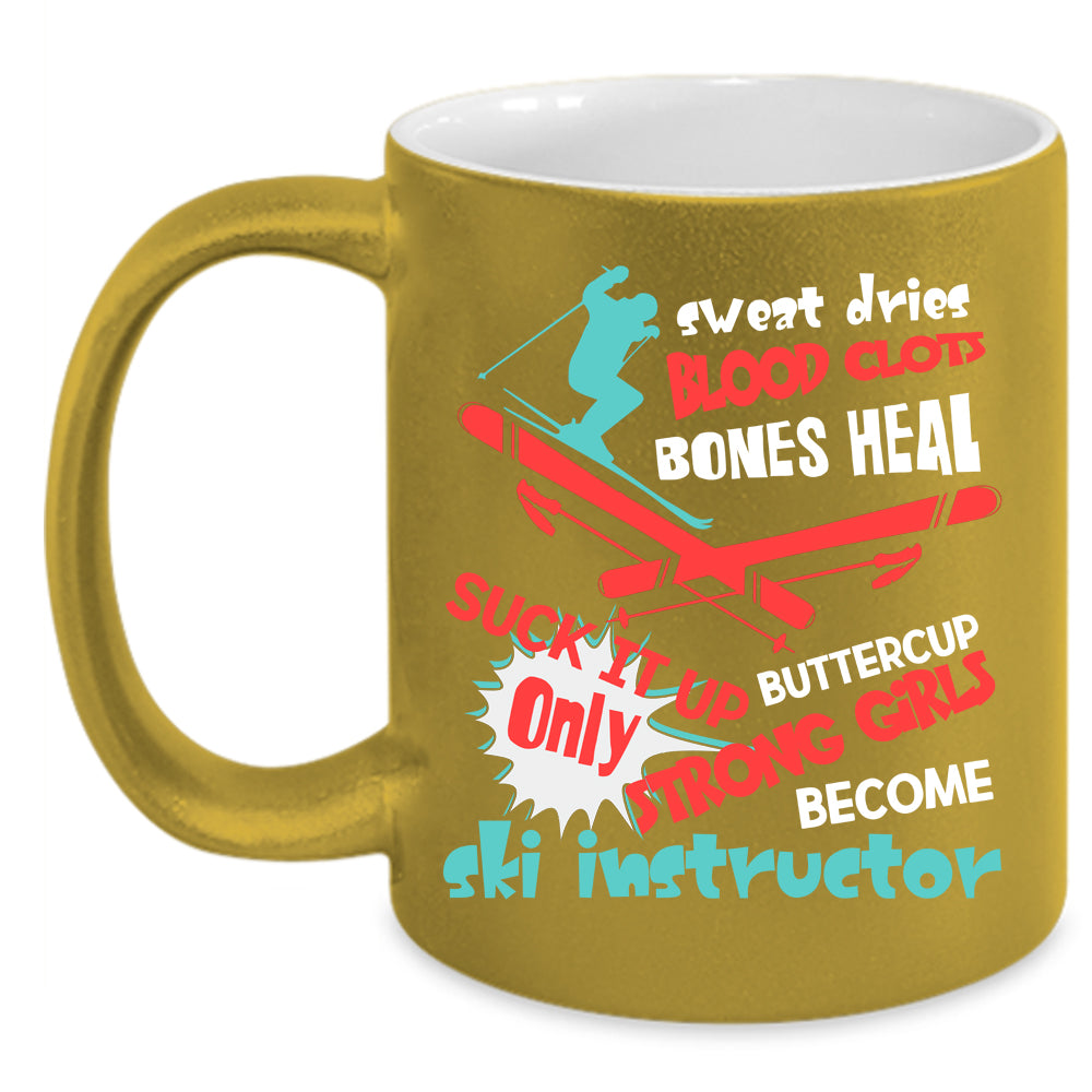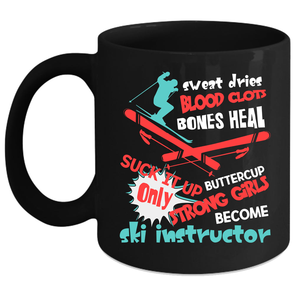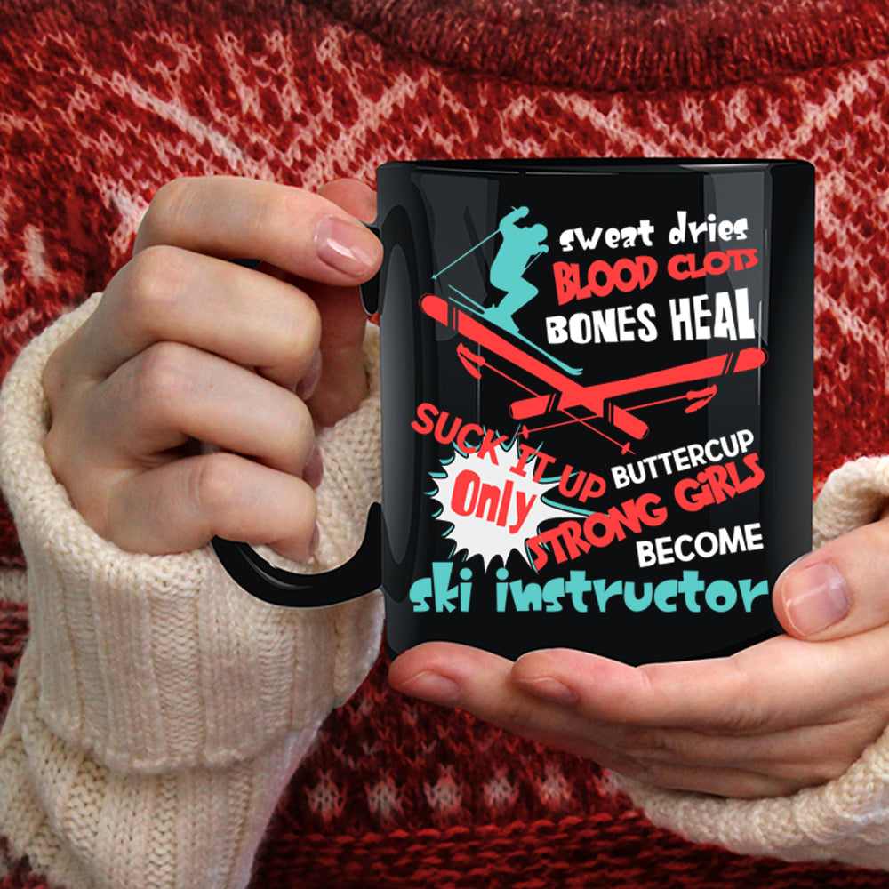 Only Strong Girls Become Ski Instructor Coffee Mug, Funny Instructor Coffee Cup