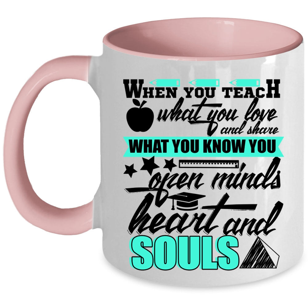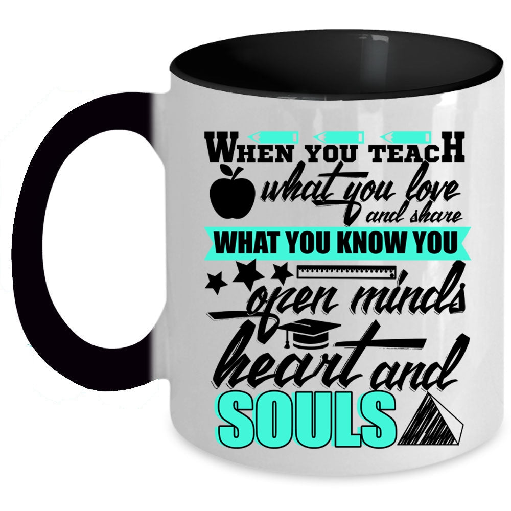 Open Minds Heart And Souls Coffee Mug, When You Teach What You Love Accent Mug