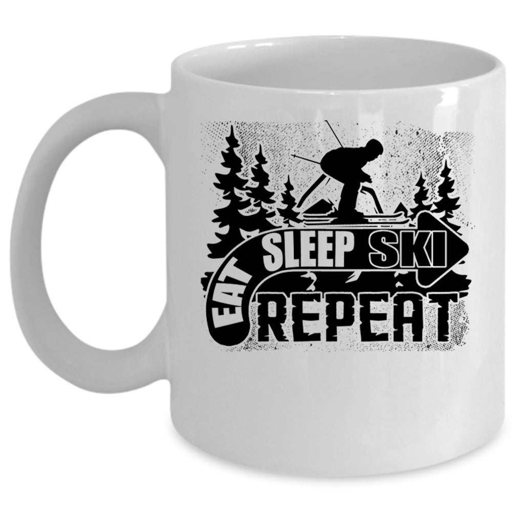 Outdoor Activity Coffee Mug, Eat Sleep Ski Repeat Cup