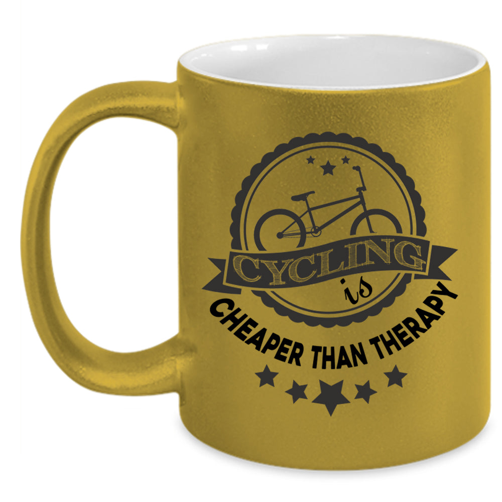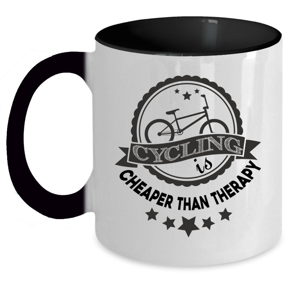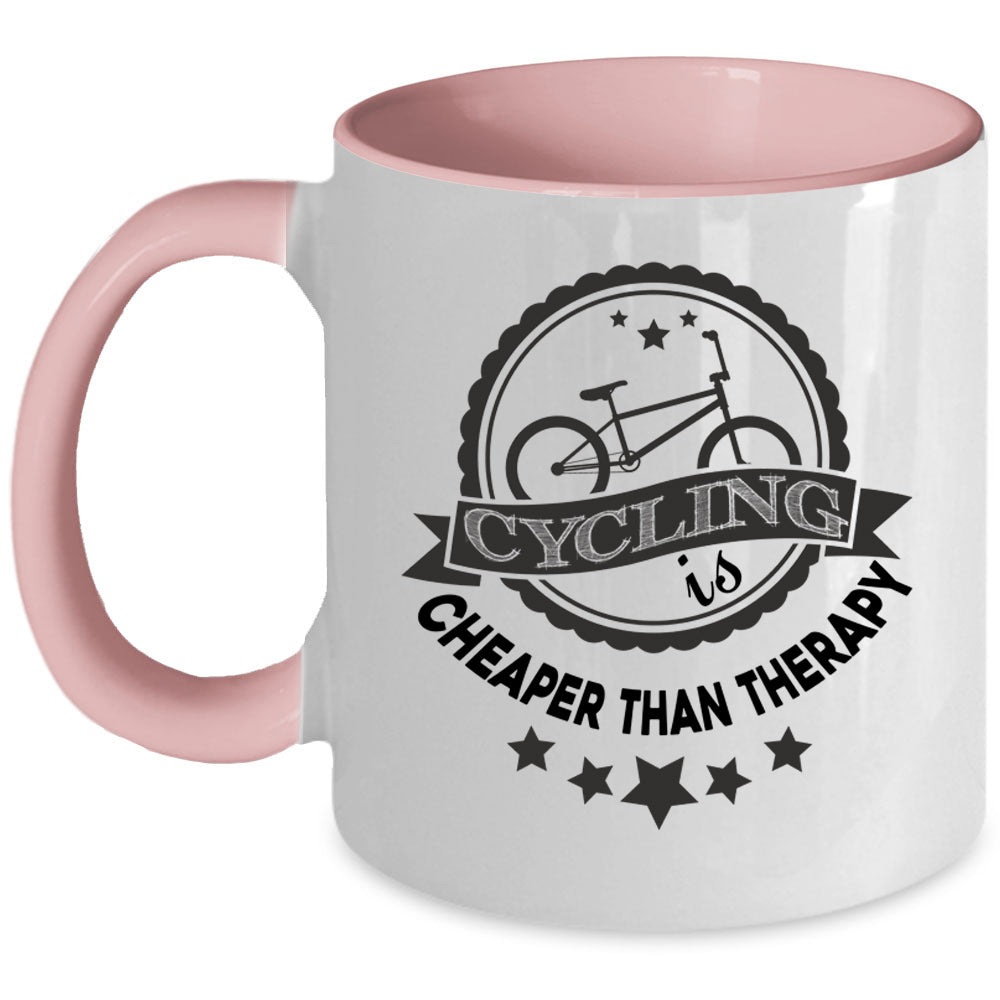 Outdoor Coffee Mug, Cycling Is Cheaper Than Therapy Accent Mug