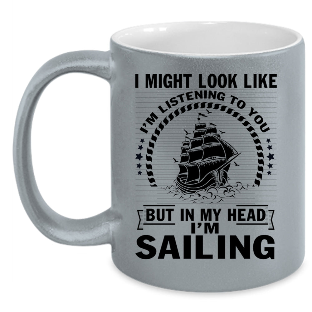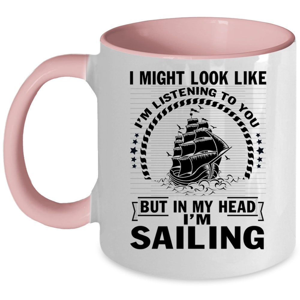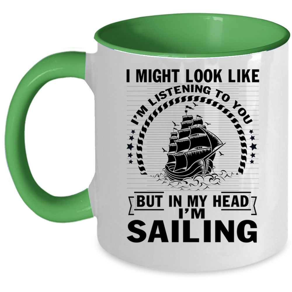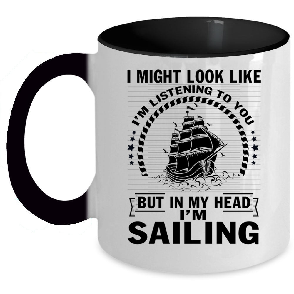 Outdoor Coffee Mug, In My Head I'm Sailing Accent Mug