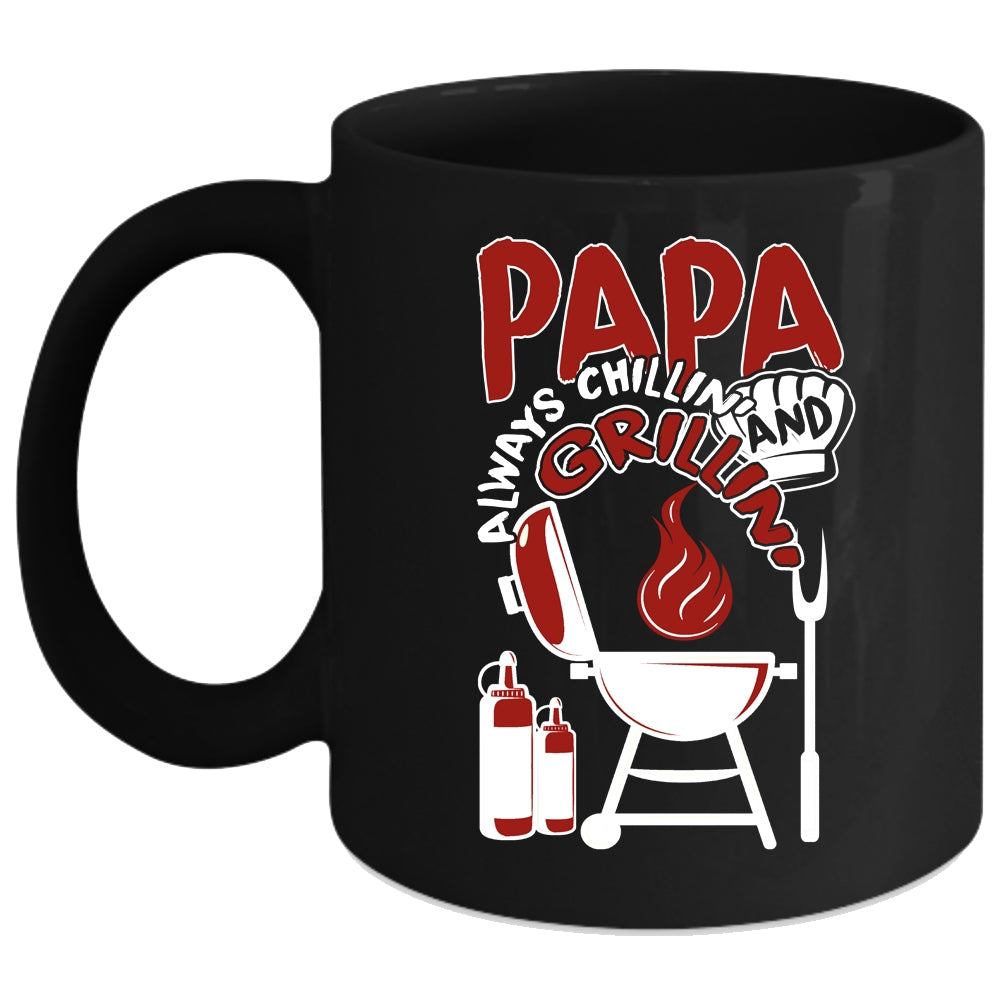 Papa Always Chilling Grilling Coffee Mug, Funny Barbecue Coffee Cup