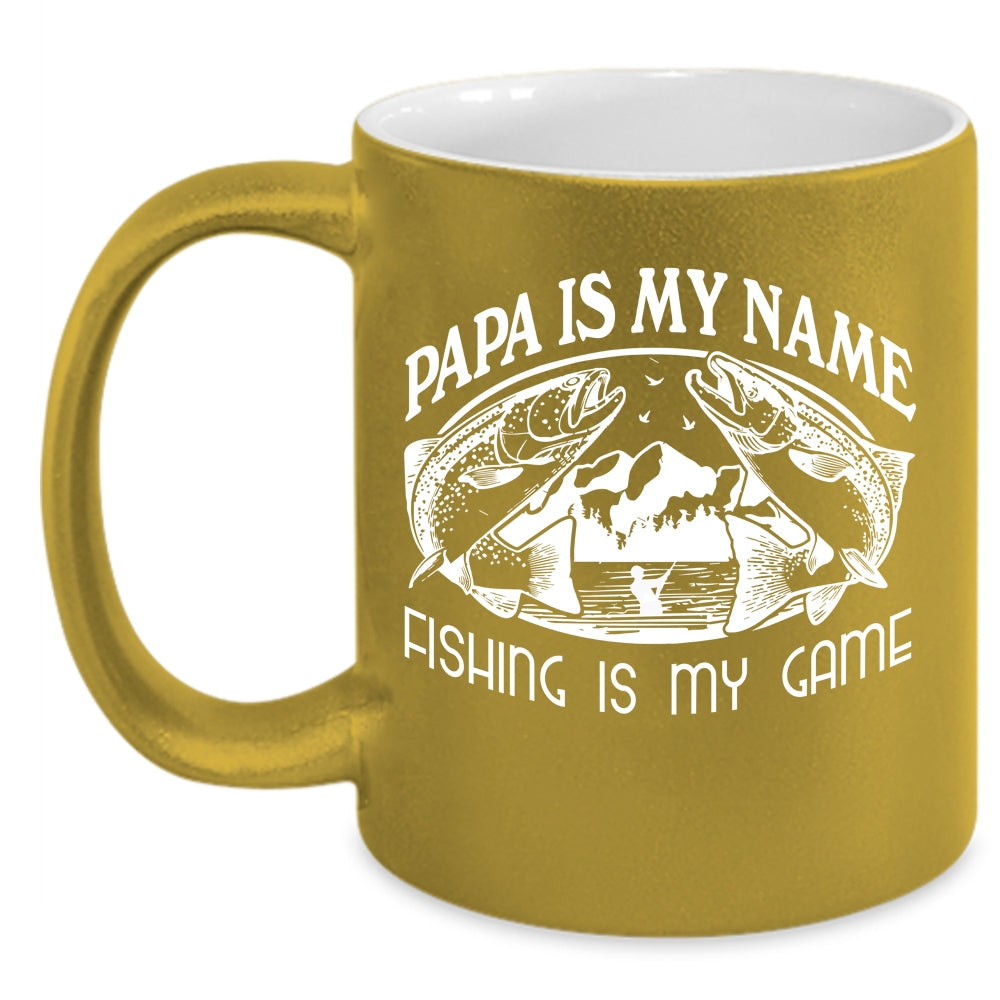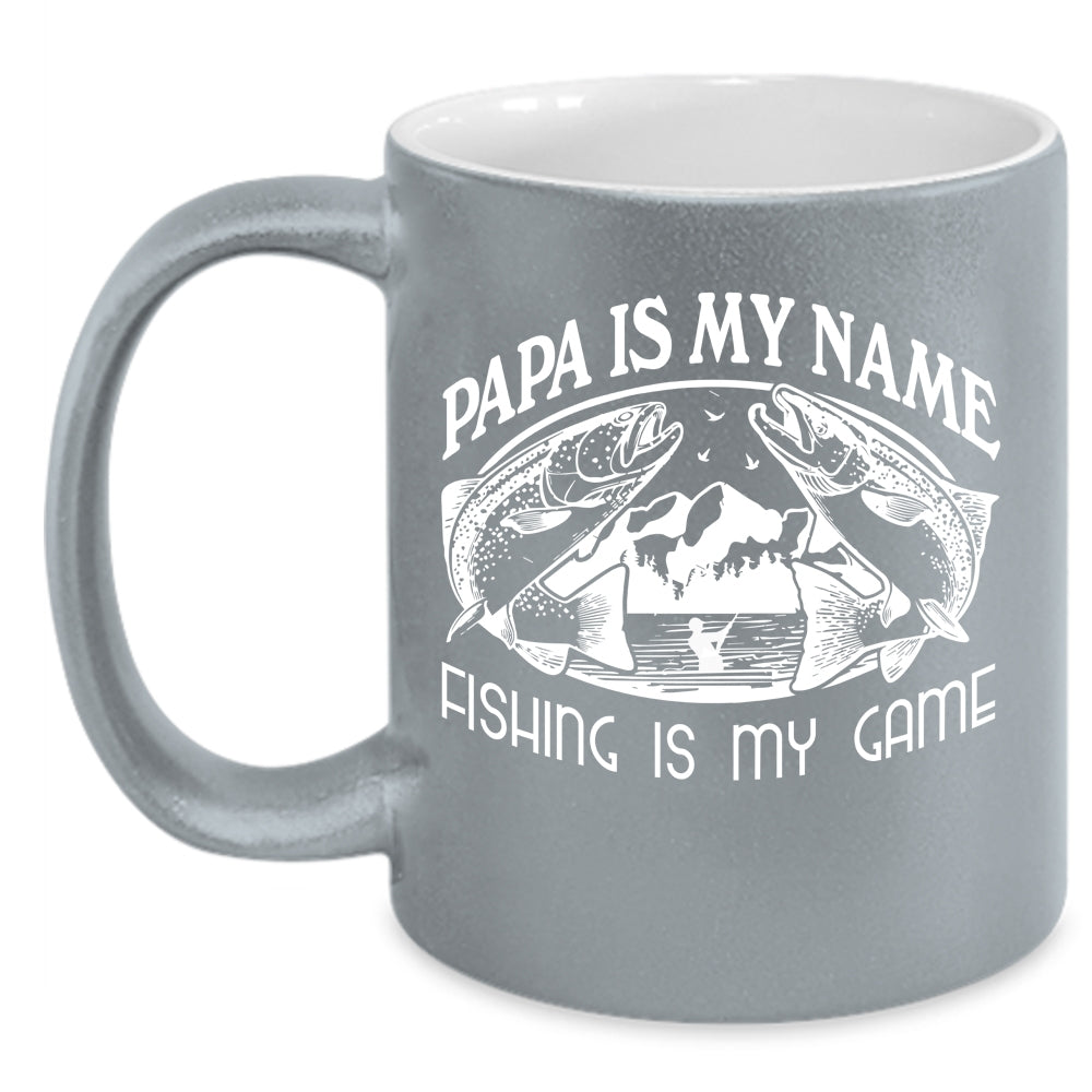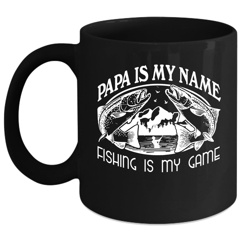 Papa Is My Name Coffee Mug, Fishing Is My Game Coffee Cup