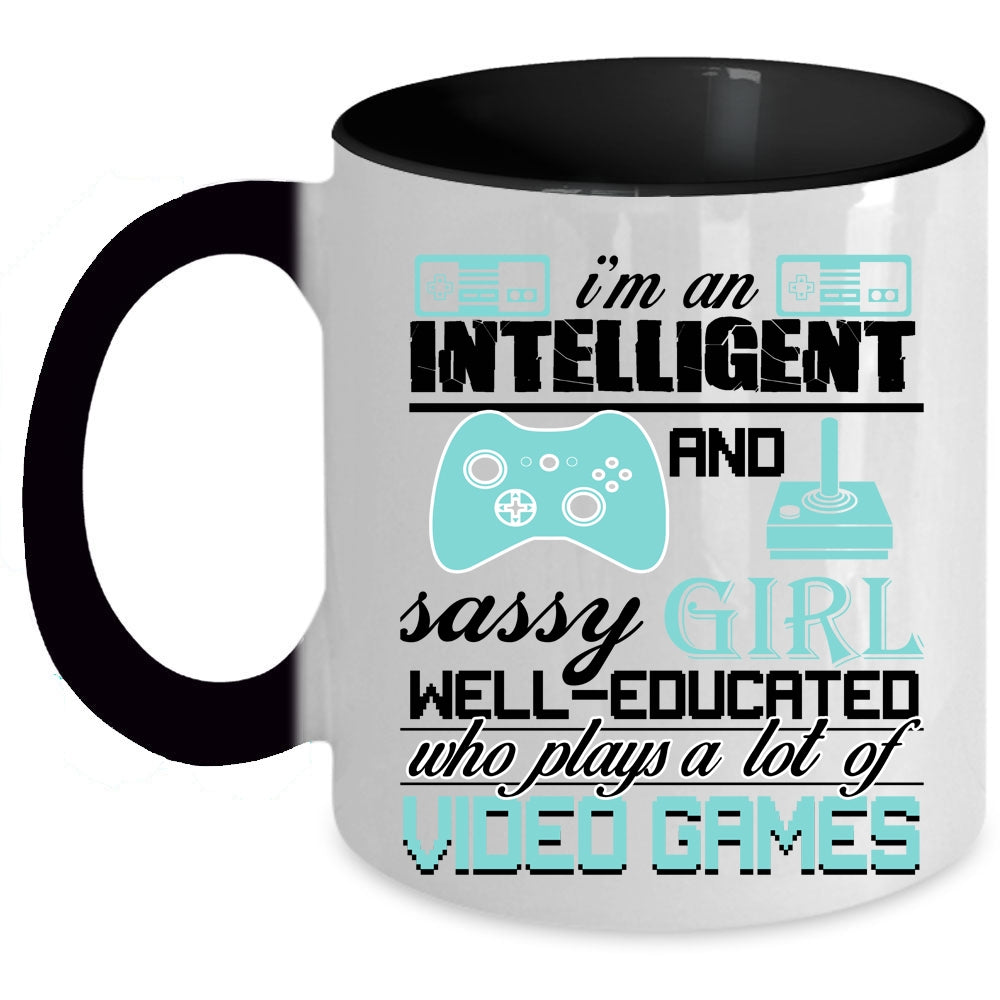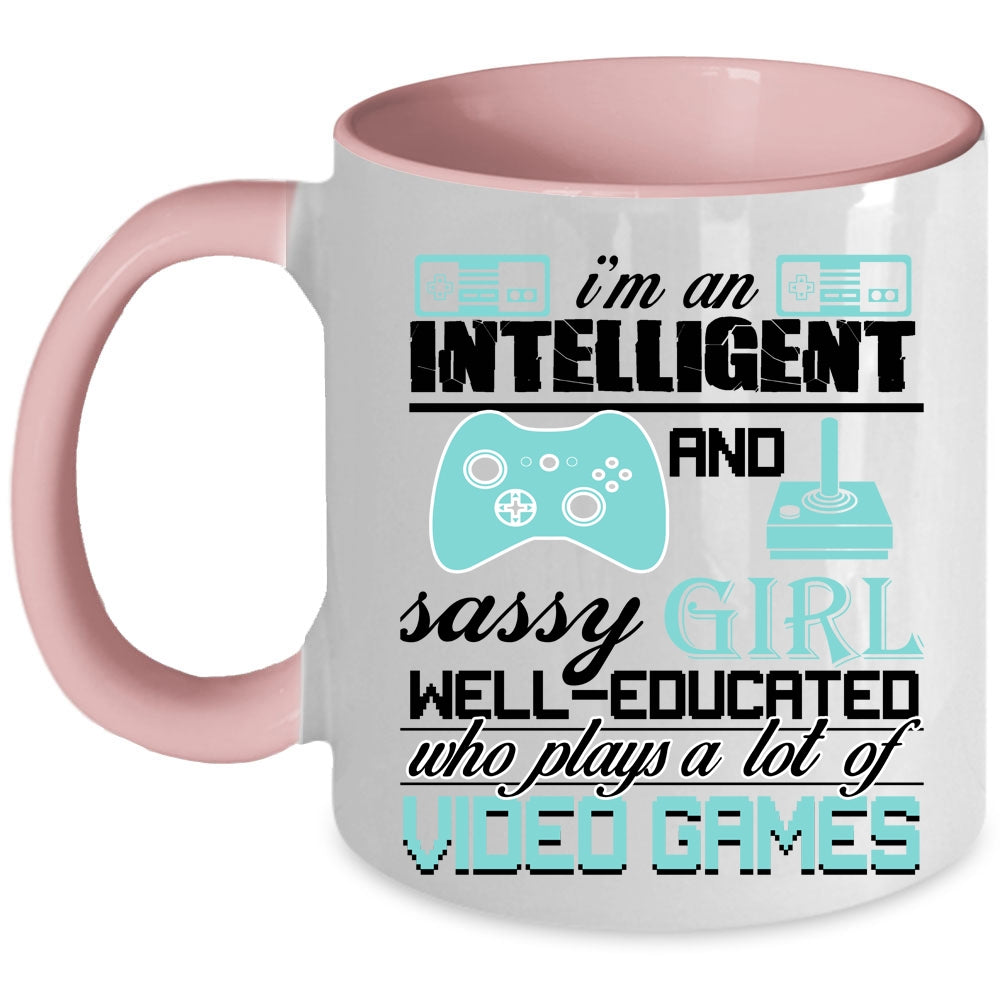 Plays A Lot Of Video Games Coffee Mug, I'm An Intelligent And Girl Accent Mug