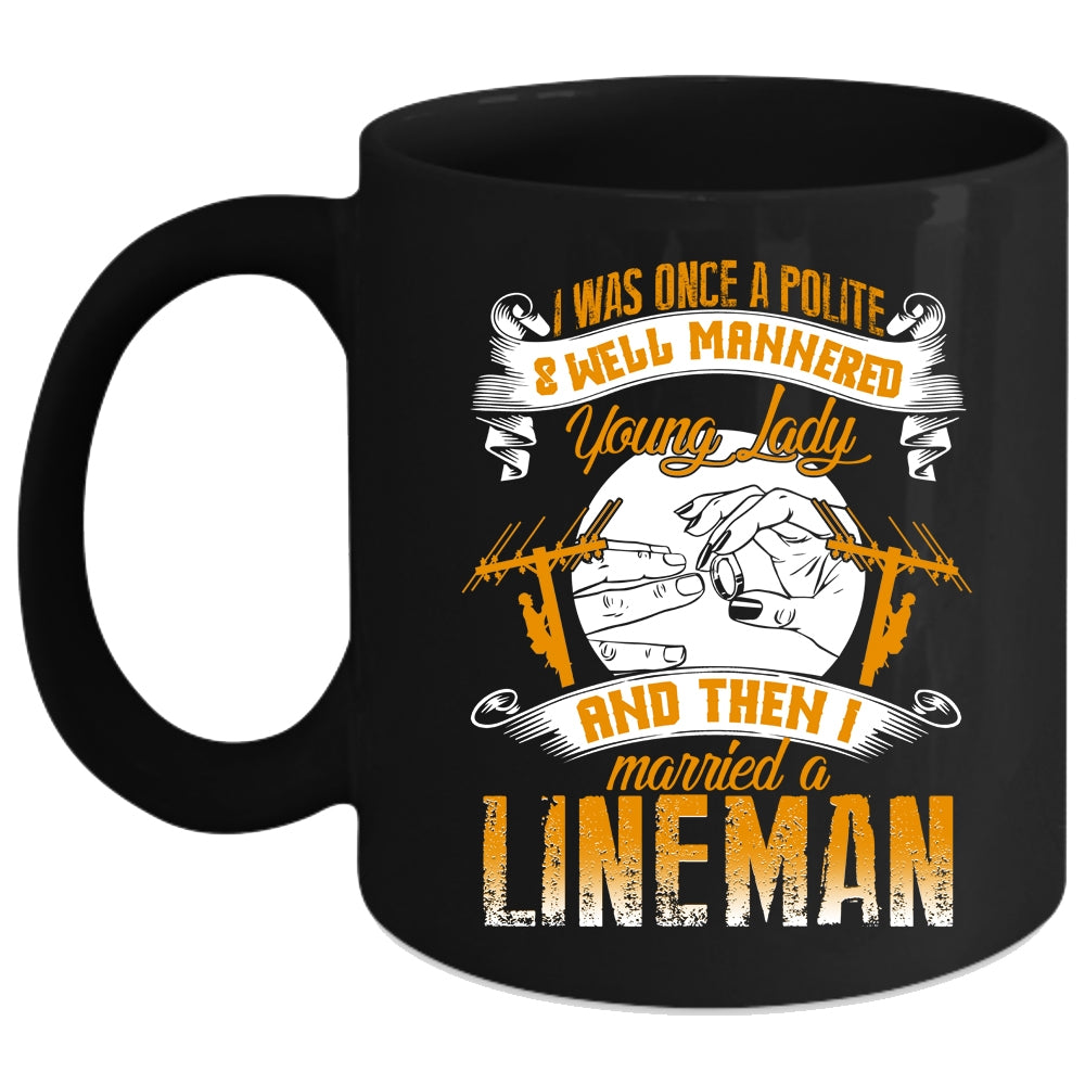 Police And Well Mannered Young Lady Coffee Mug, I Married A Lineman Coffee Cup