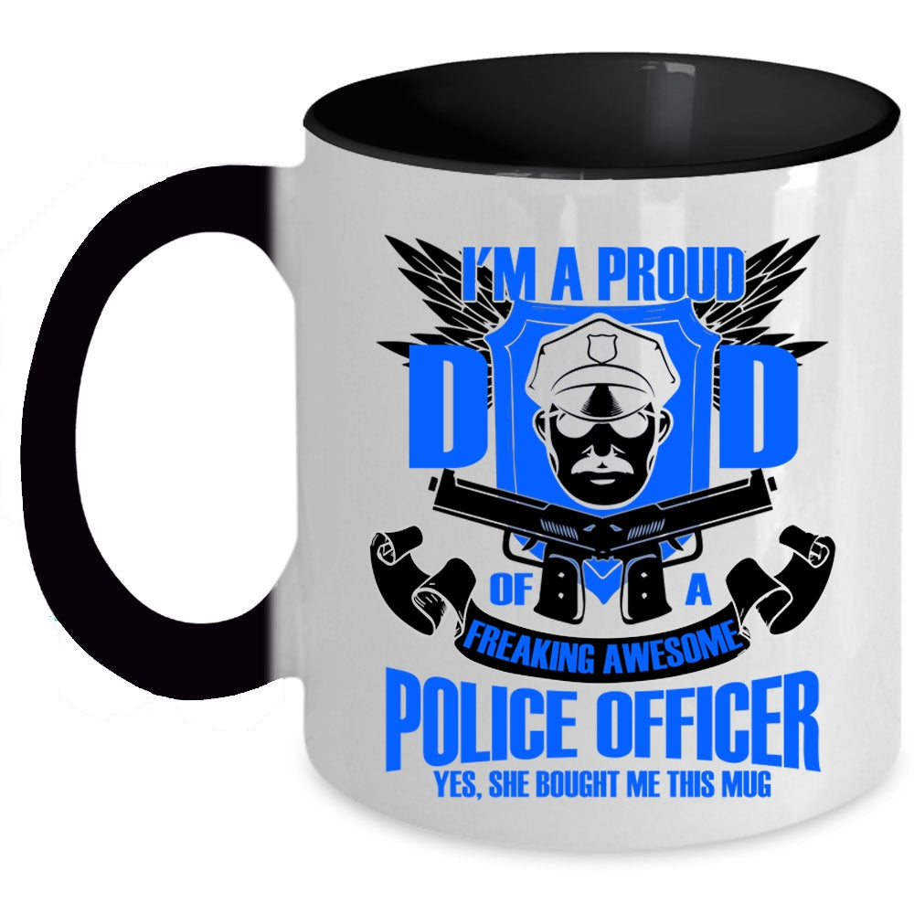 Policeman's Dad Coffee Mug, I'm A Proud Dad Of A Police Officer Accent Mug