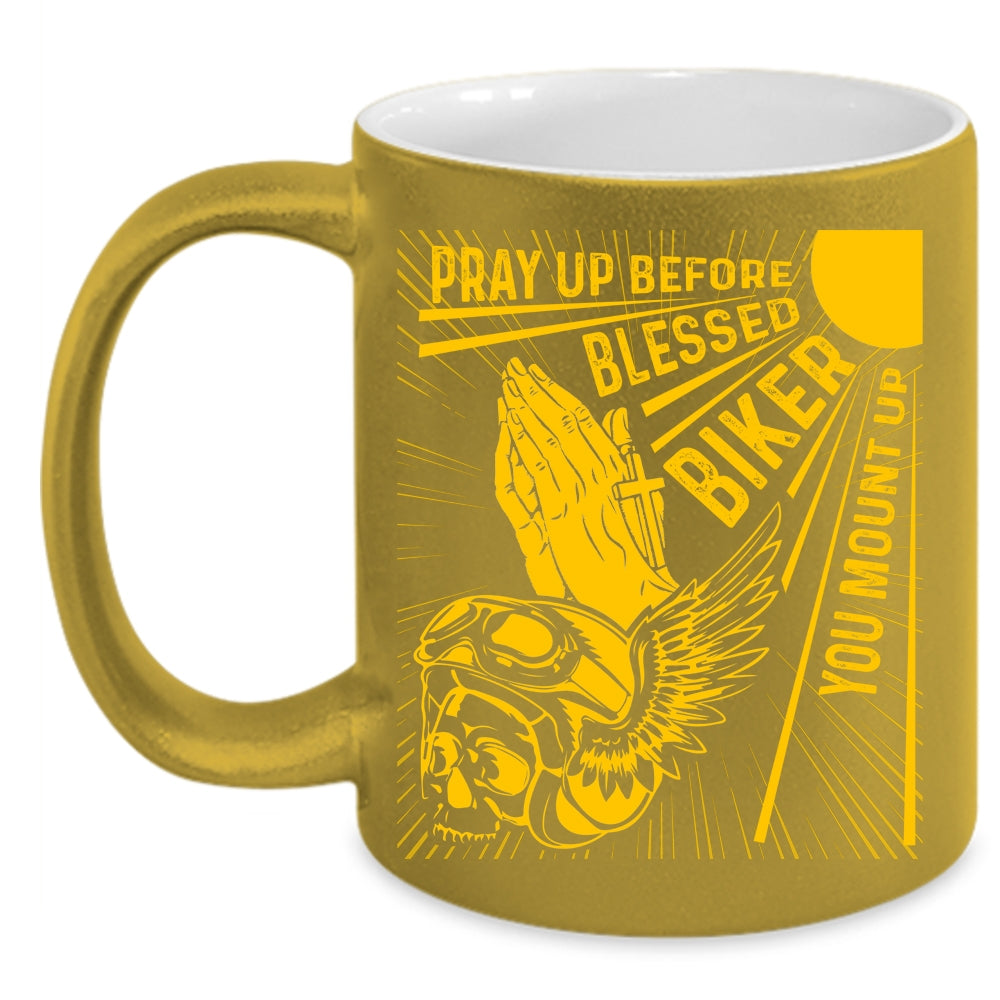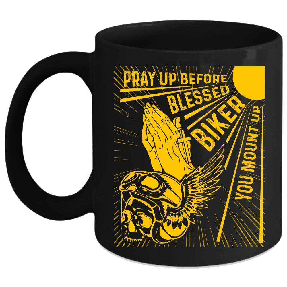 Pray Up Before Blessed Biker Coffee Mug, Cool Biker Coffee Cup