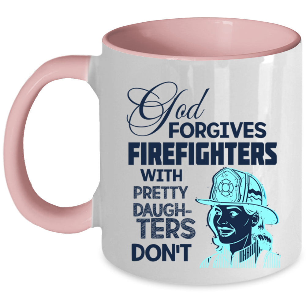 Pretty Daughters Coffee Mug, God Forgives Firefighters Accent Mug
