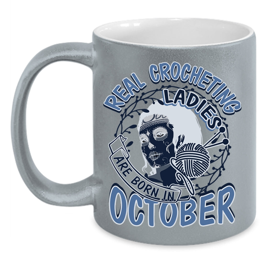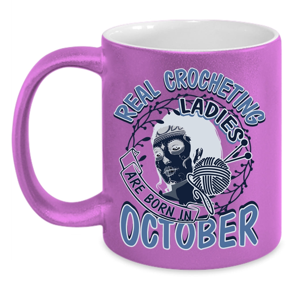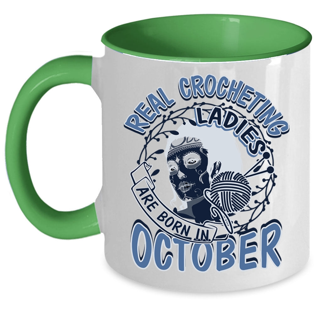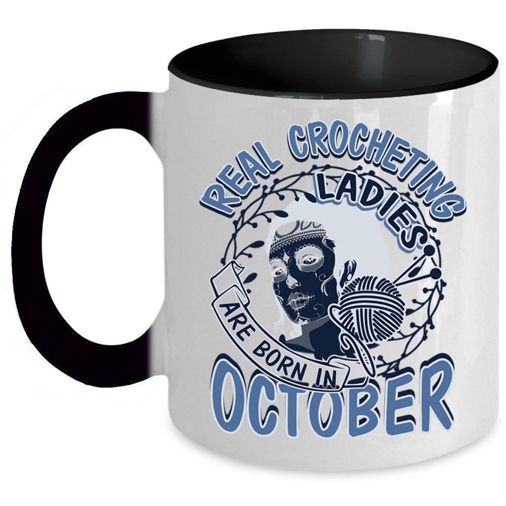 Pretty Girls Coffee Mug, Real Crocheting Ladies Are Born In October Accent Mug