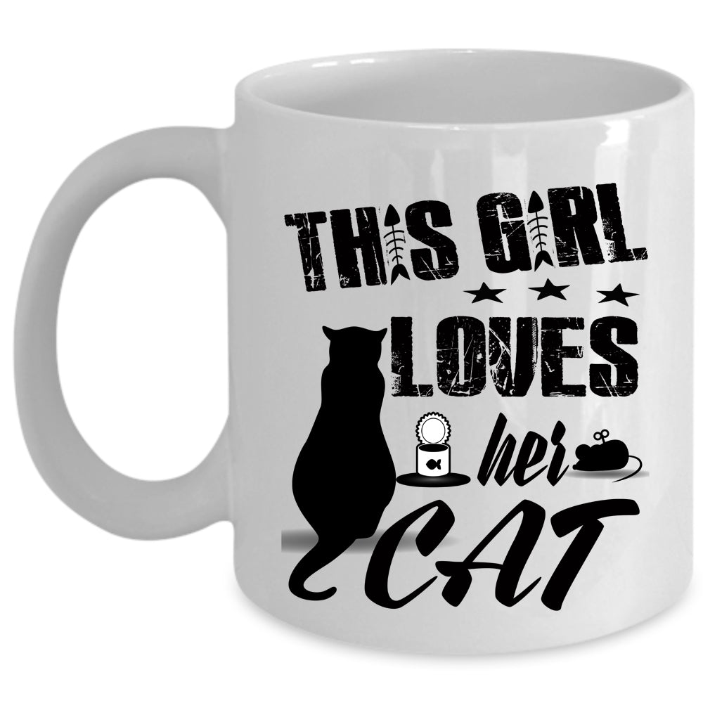 Pretty Girls Coffee Mug, This Girl Loves Her Cat Cup