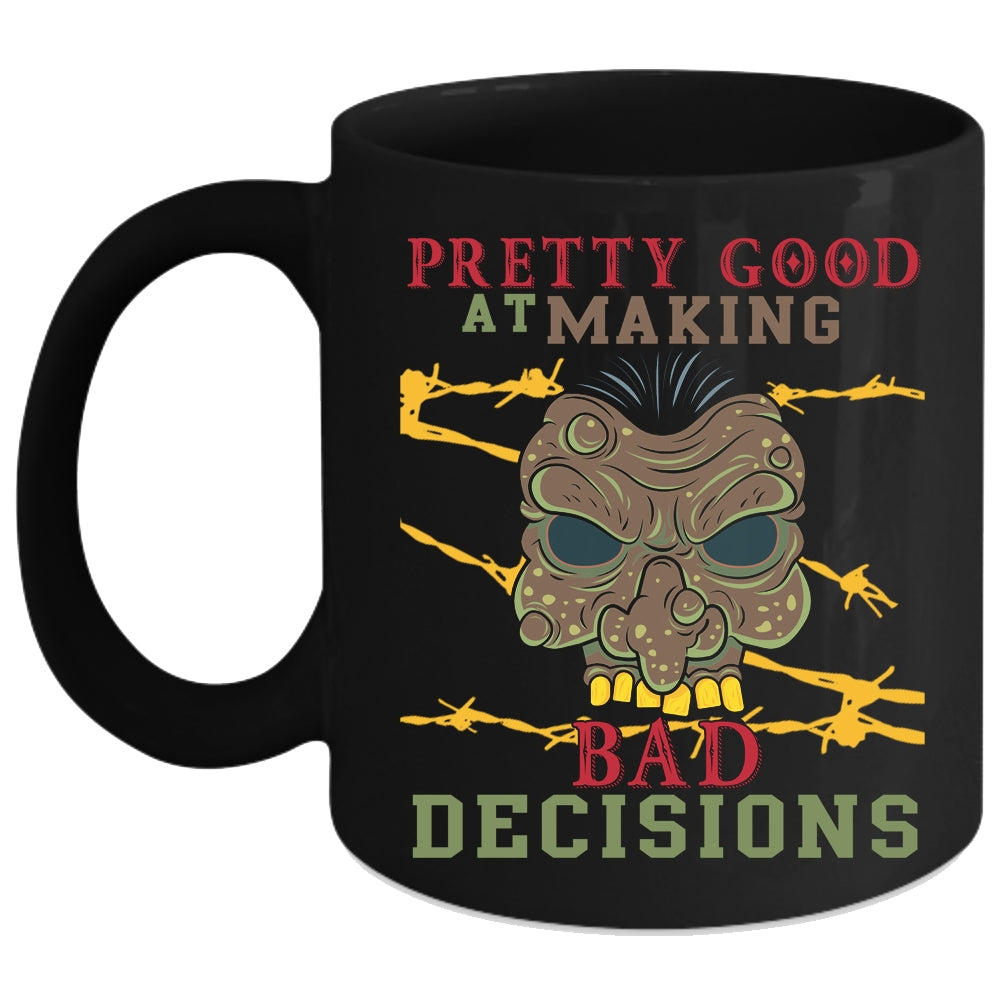 Pretty Good At Making Bad Decisions Coffee Mug, Scary Coffee Cup