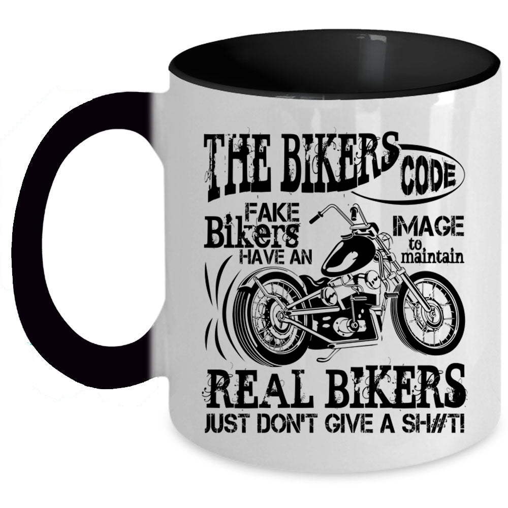 Real Bikers Coffee Mug, The Bikers Code Fake Bikers Accent Mug