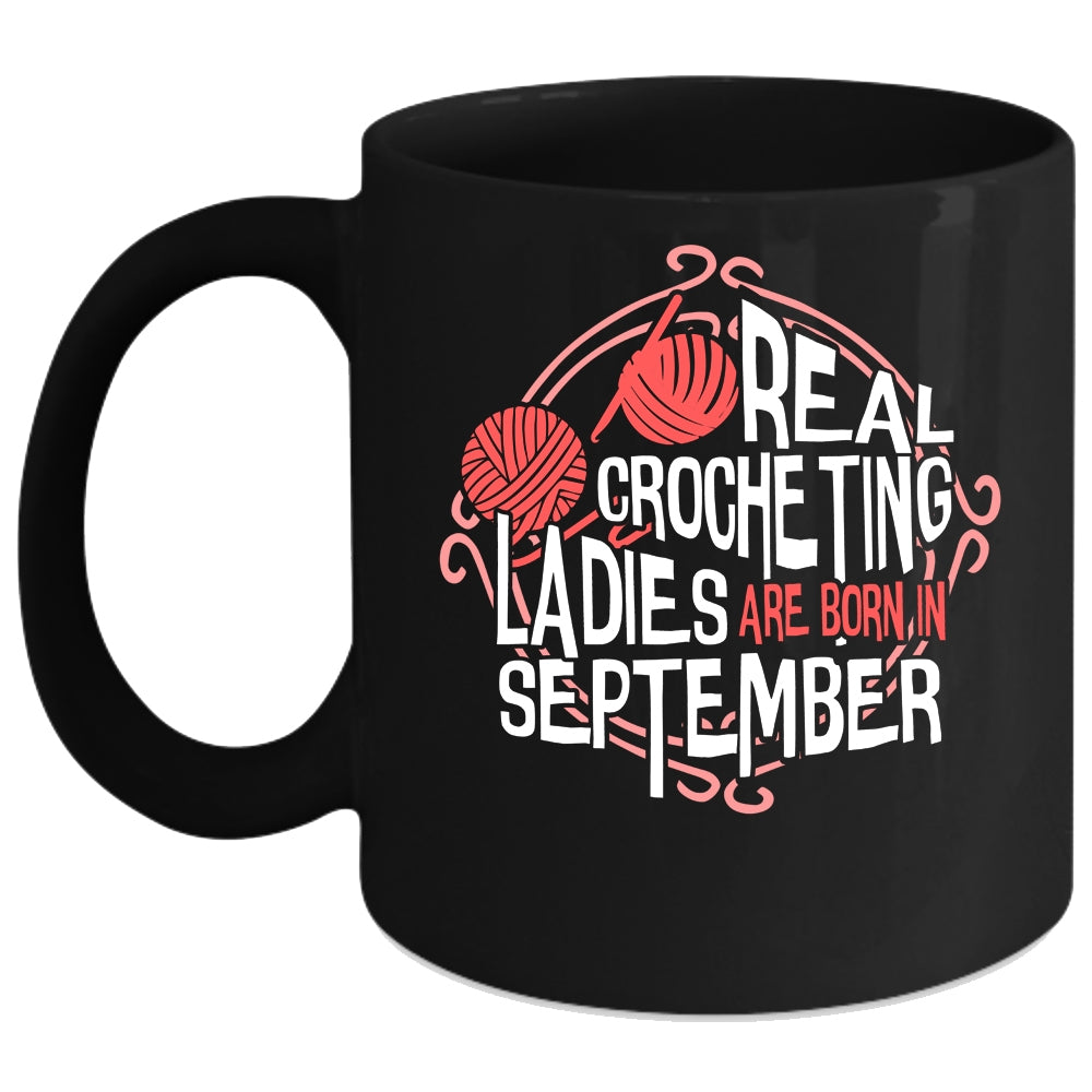Real Crocheting Ladies Are Born In September Coffee Mug, Cool Lady Coffee Cup