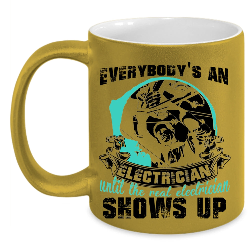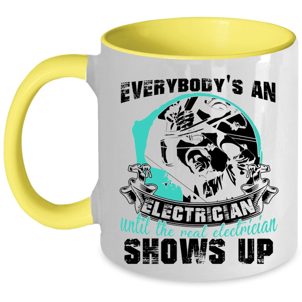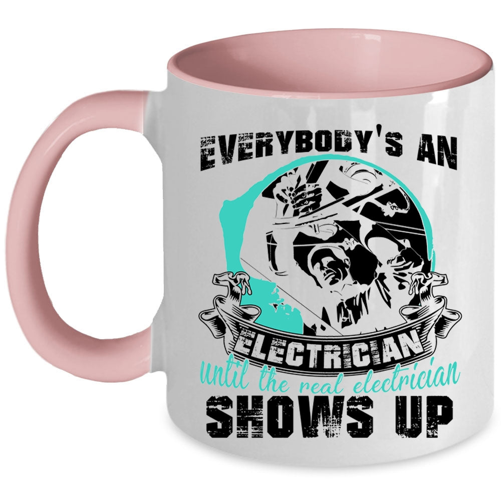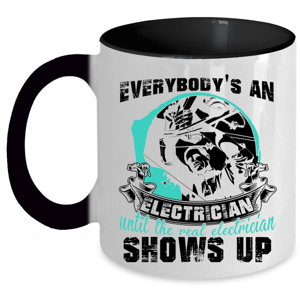 Real Electrician Shows Up Coffee Mug, Everybody's An Electrician Accent Mug