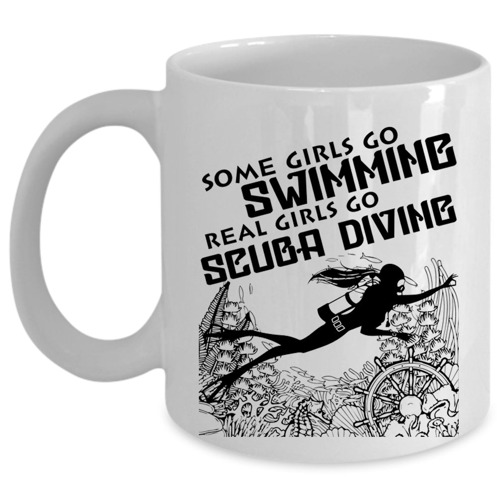 Real Girls Go Scuba Diving Coffee Mug, Some Girls Go Swimming Cup