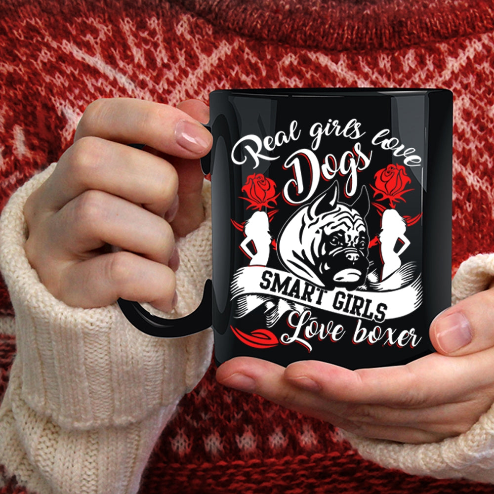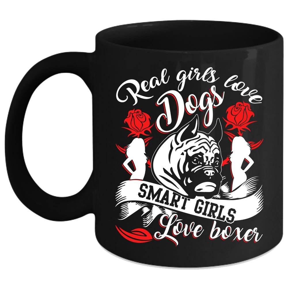 Real Girls Love Dogs Coffee Mug, Smart Girls Love Boxer Coffee Cup
