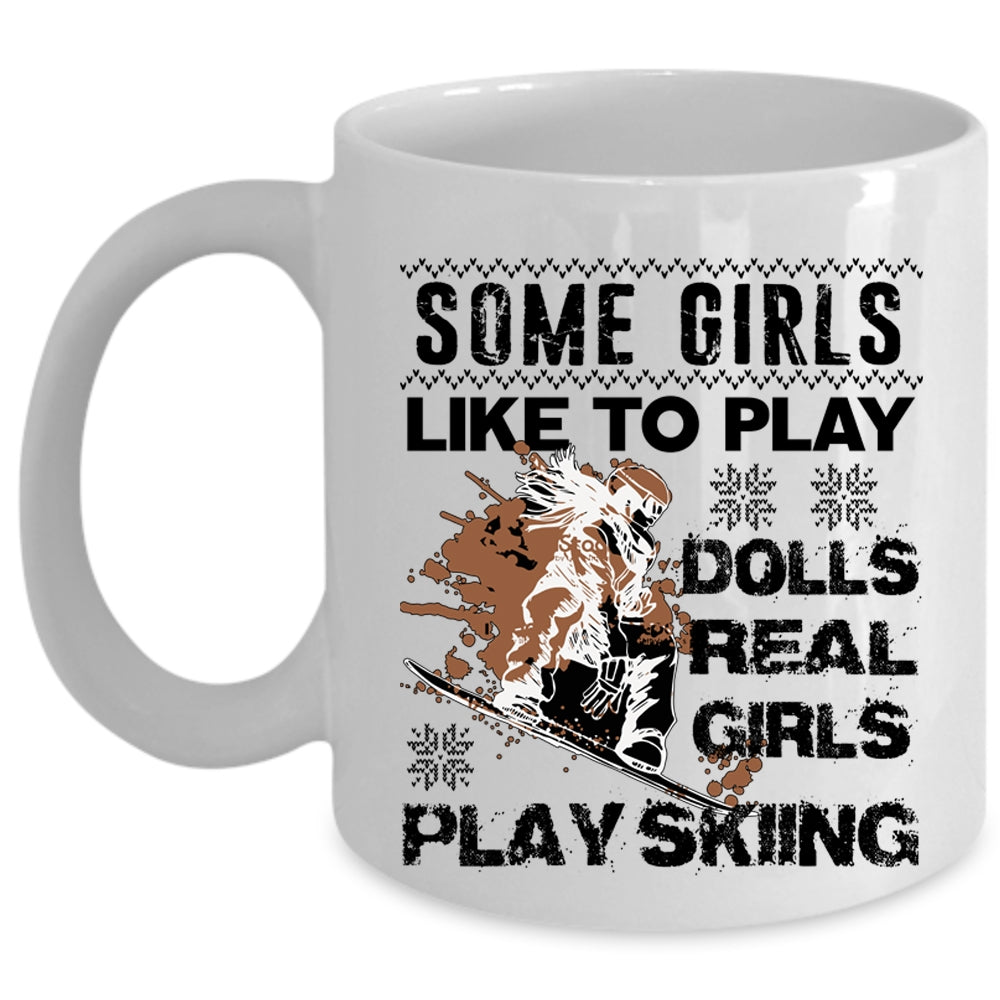 Real Girls Play Skiing Coffee Mug, Some Girls Like To Play Dolls Cup