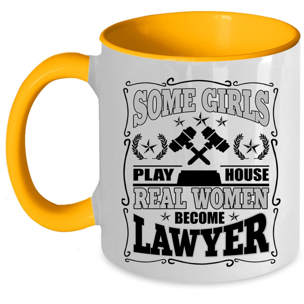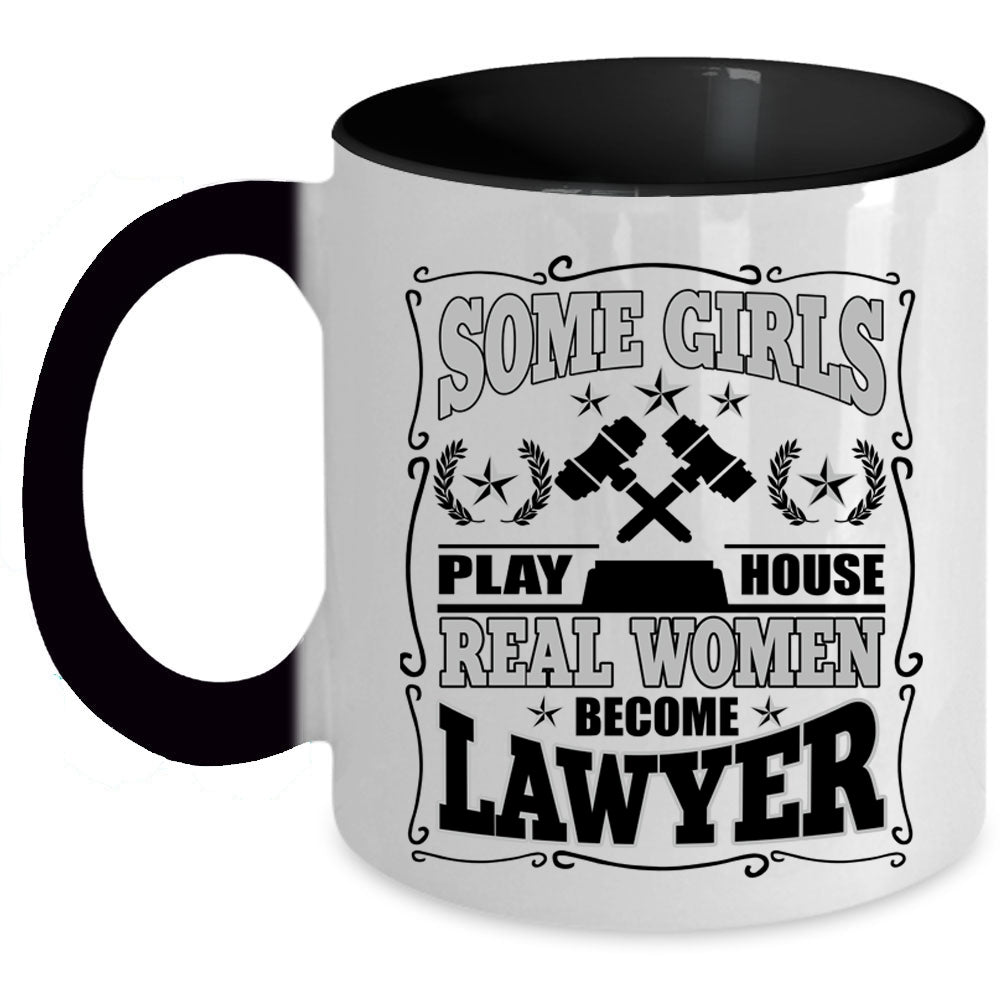 Real Women Become Lawyer Coffee Mug, Some Girls Play House Accent Mug